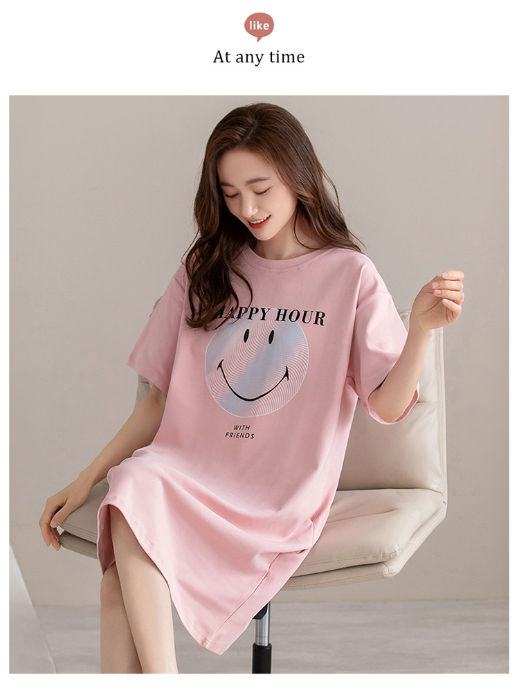 여름 순면 편안한 통기성 잠옷 짧은 소매 느슨한 요정 스타일 겉옷 착용 연령 감소 홈 중간 길이 원피스