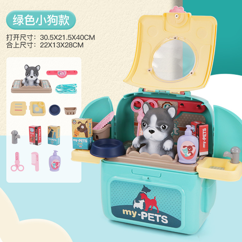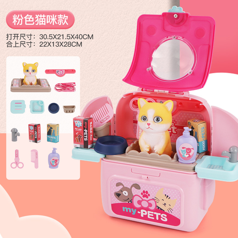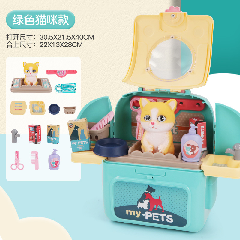 크로스 보더 어린이 놀이 홈 주방 장난감 소년과 소녀 메이크업 의사 도구 애완 동물 고양이 개 배낭 세트스토어 가기