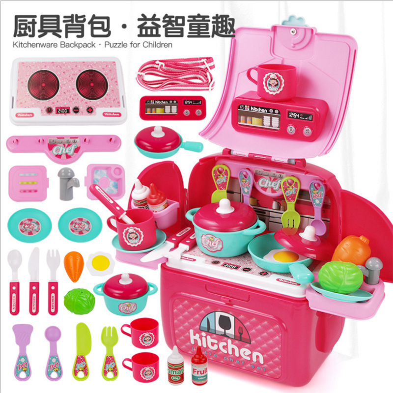 크로스 보더 어린이 놀이 홈 주방 장난감 소년과 소녀 메이크업 의사 도구 애완 동물 고양이 개 배낭 세트