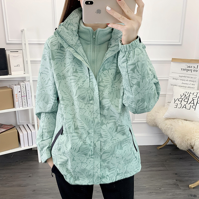Three-in-One 남성용 분리형 방풍 방수 야외 등산 세트 겨울 두꺼운 따뜻한 커플 코트 여성스토어 가기
