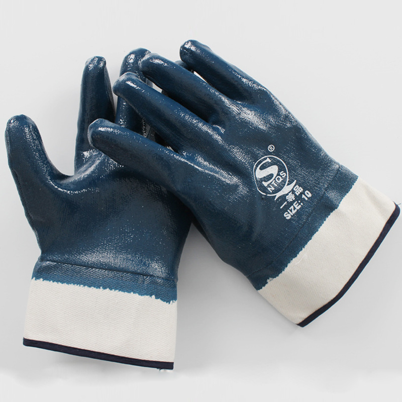 담근 고무 내성 내유성 풀행잉 장갑 파란색 큰 입 내구성 내유성 블루 니트릴 캔버스 작업 두꺼운 전기 용접 장갑스토어 가기
