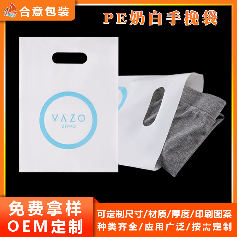 PE 밀크 화이트 핸드백 맞춤 인쇄 그래픽 광고 선물 가방 의류 화장품 가게 네 손가락 핸드백