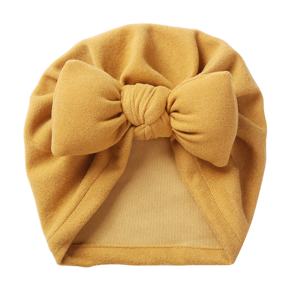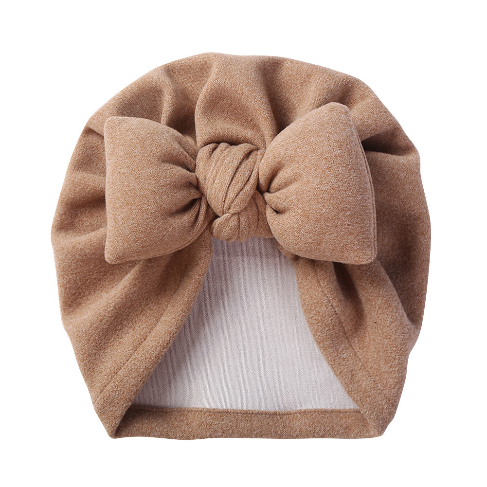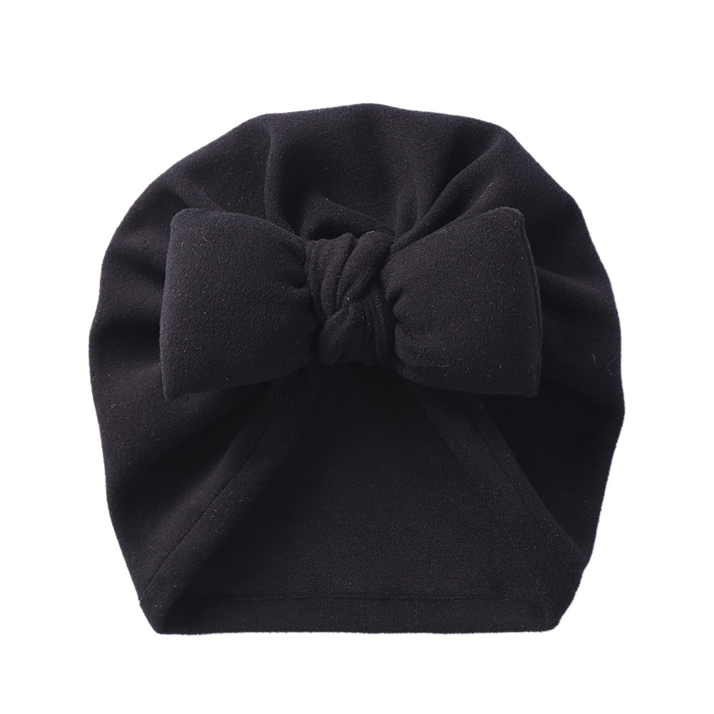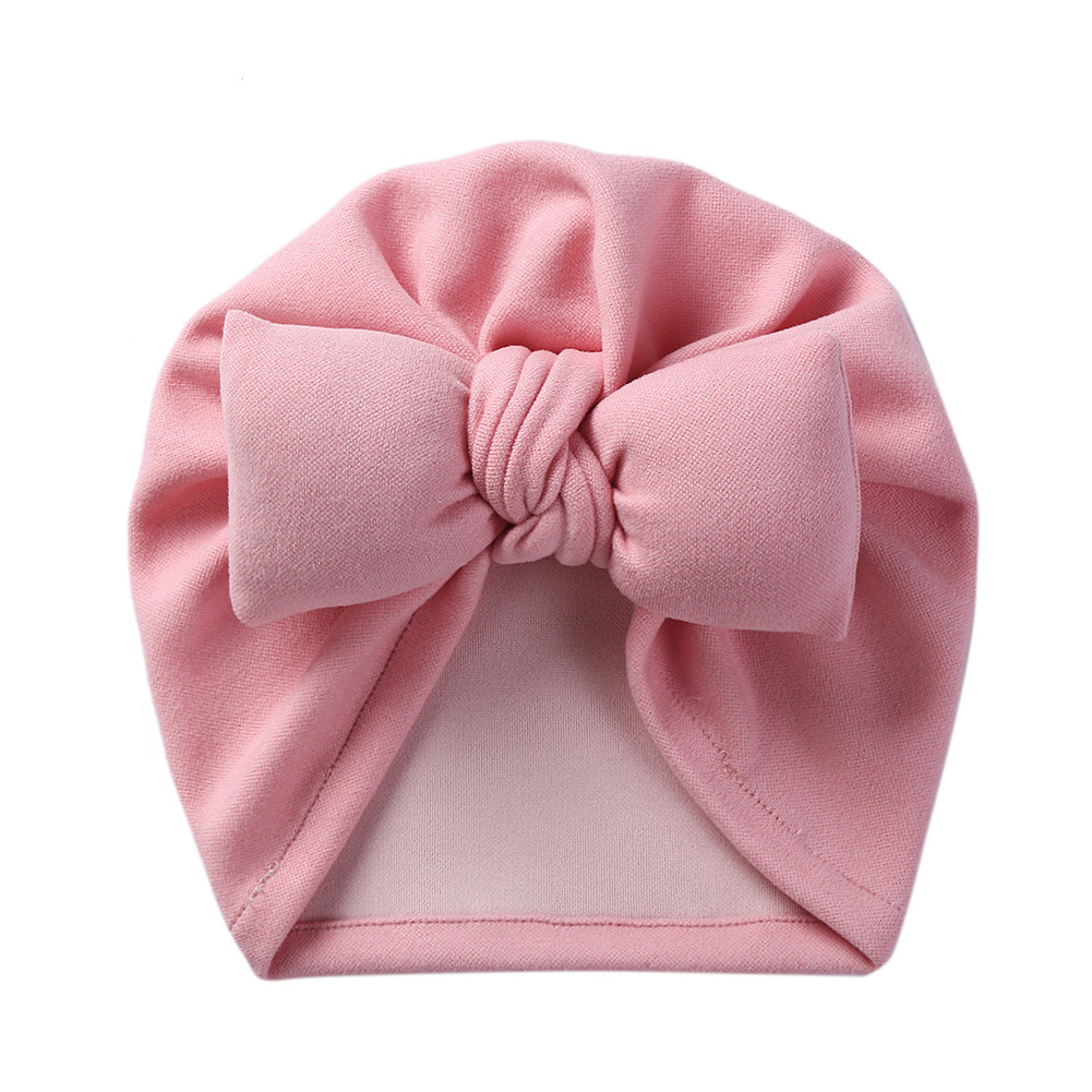 跨境新款纯色儿童套头帽双蝴蝶结宝宝印度帽子坑条棉柔软婴儿胎帽超值价:¥4.7