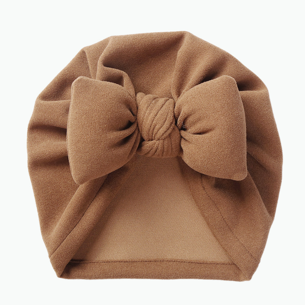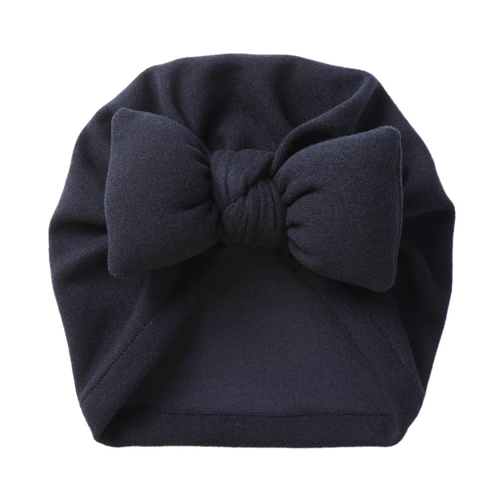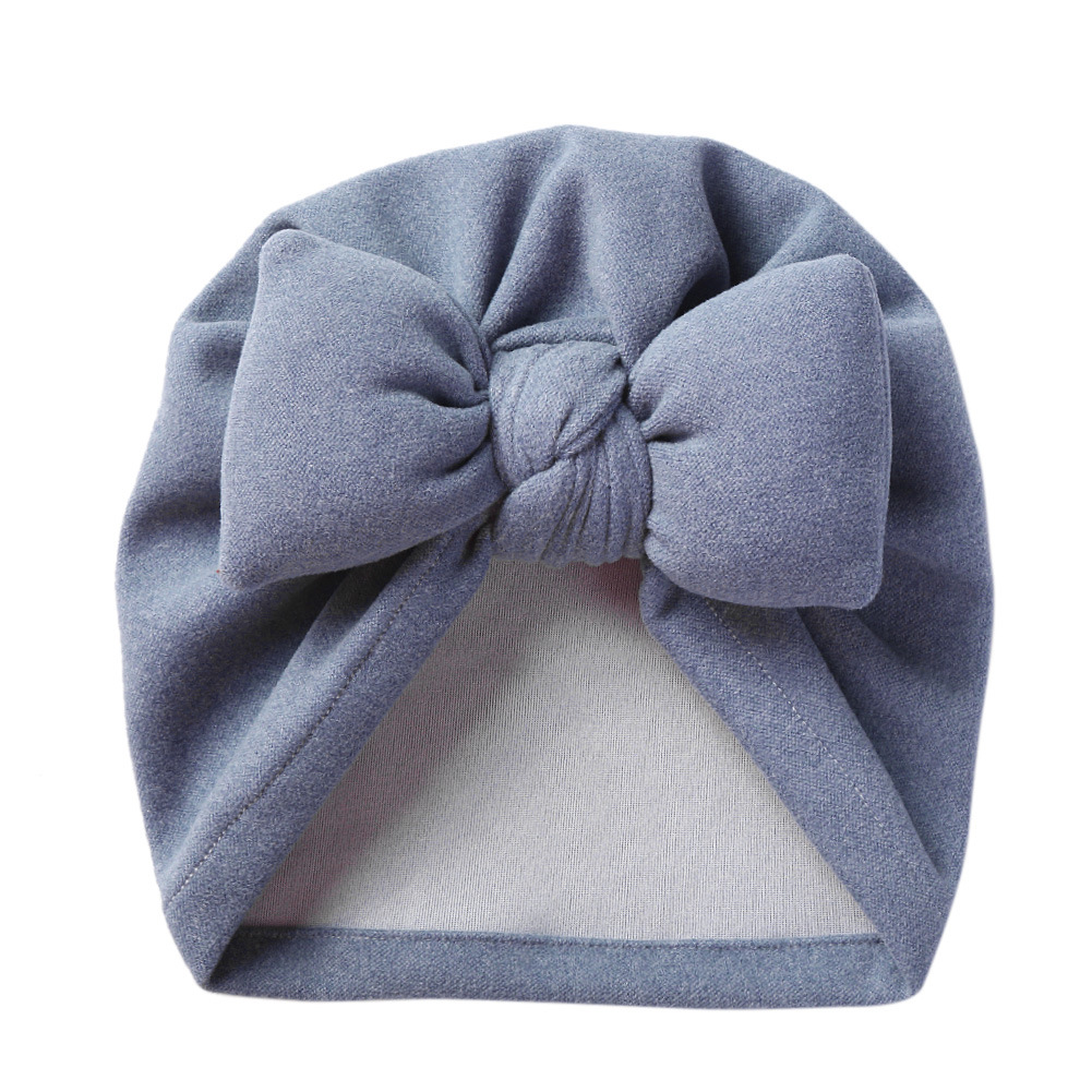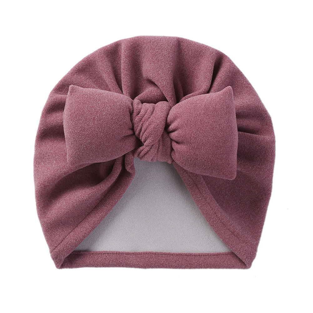 跨境新款纯色儿童套头帽双蝴蝶结宝宝印度帽子坑条棉柔软婴儿胎帽超值价:¥4.7