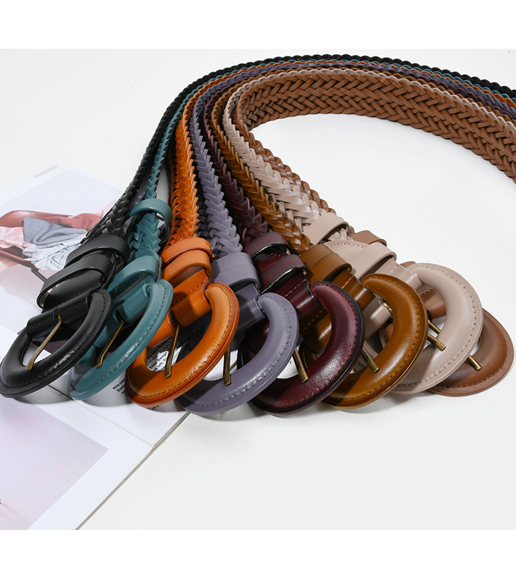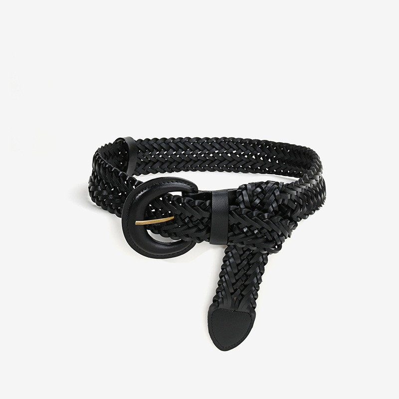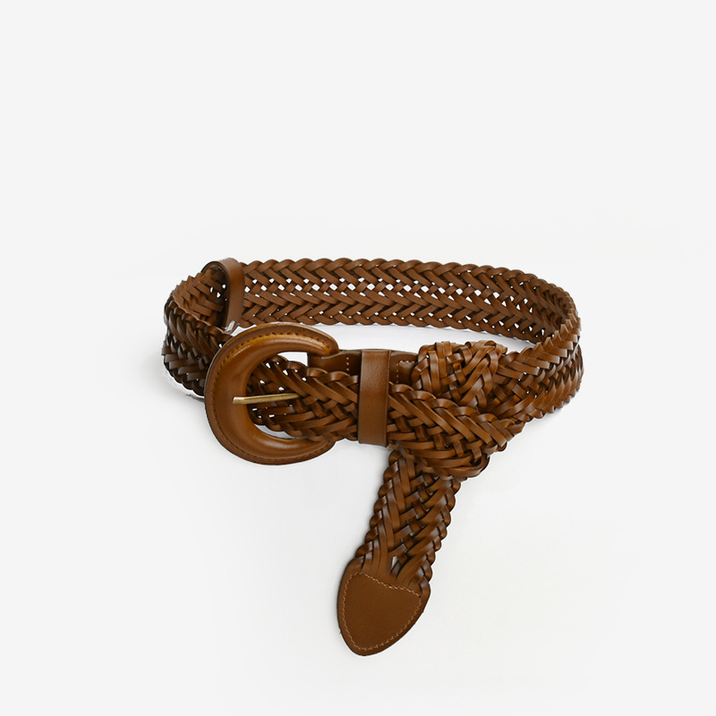 여자의 넓은 벨트 비 천공 짠 정품 가죽 여름 장식 세트 원피스 허리 작은 벨트와 2 층 소가죽스토어 가기