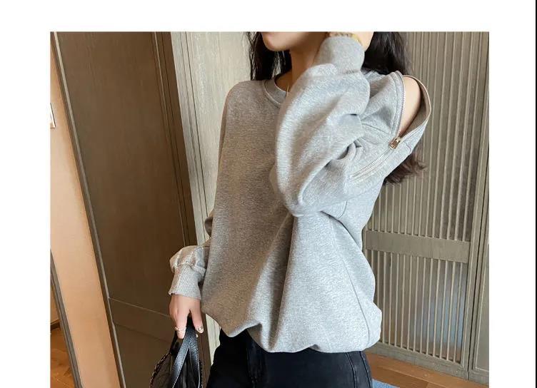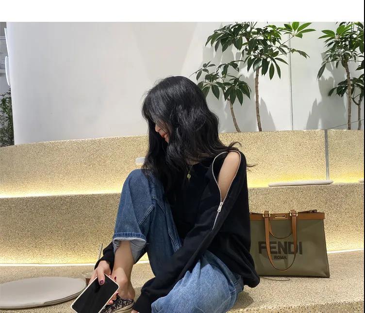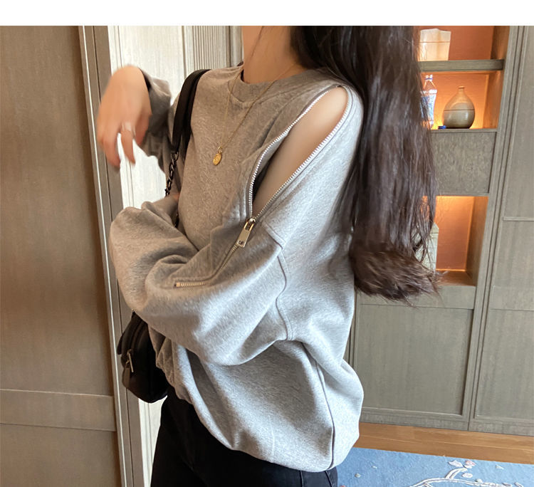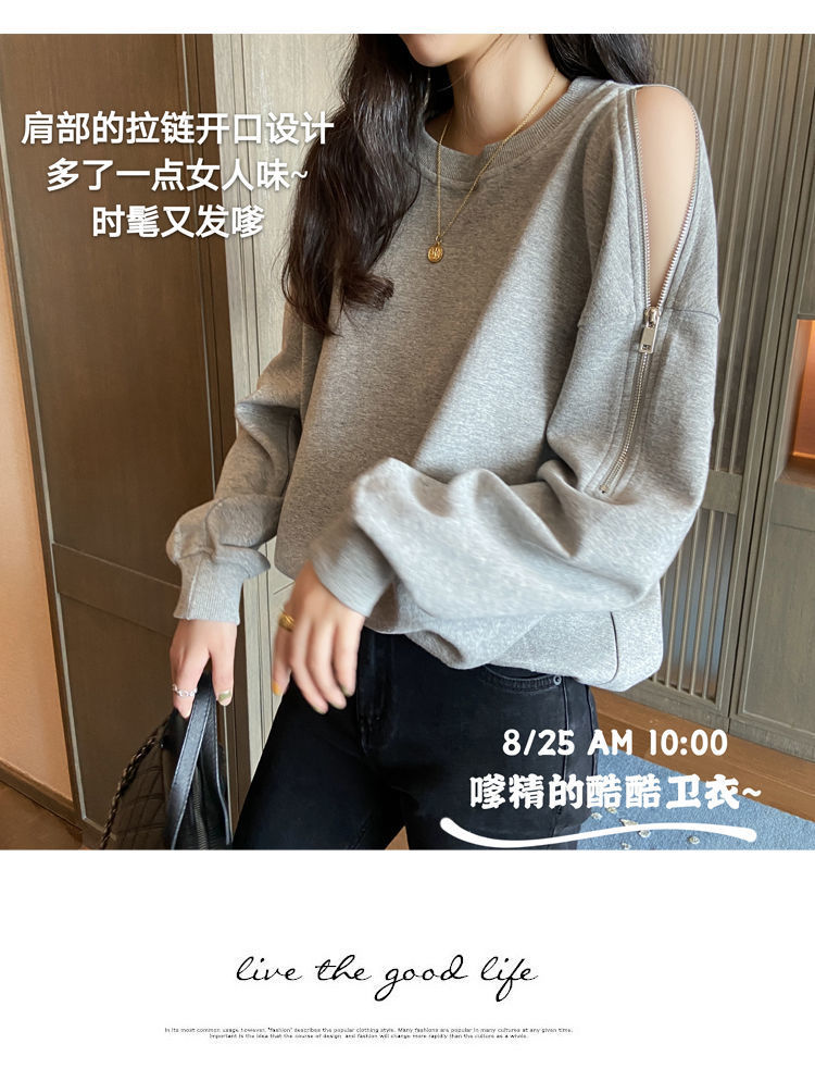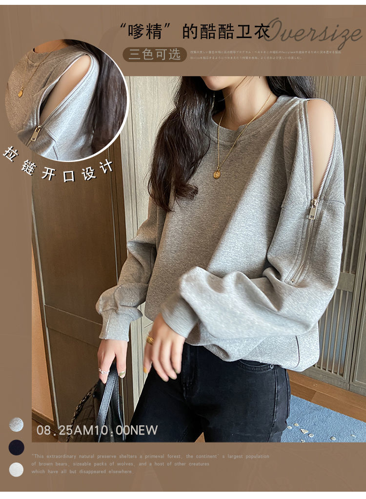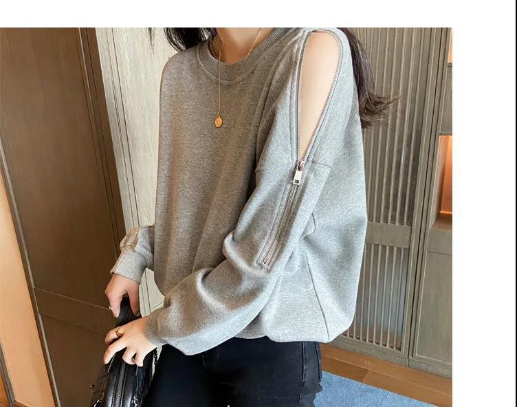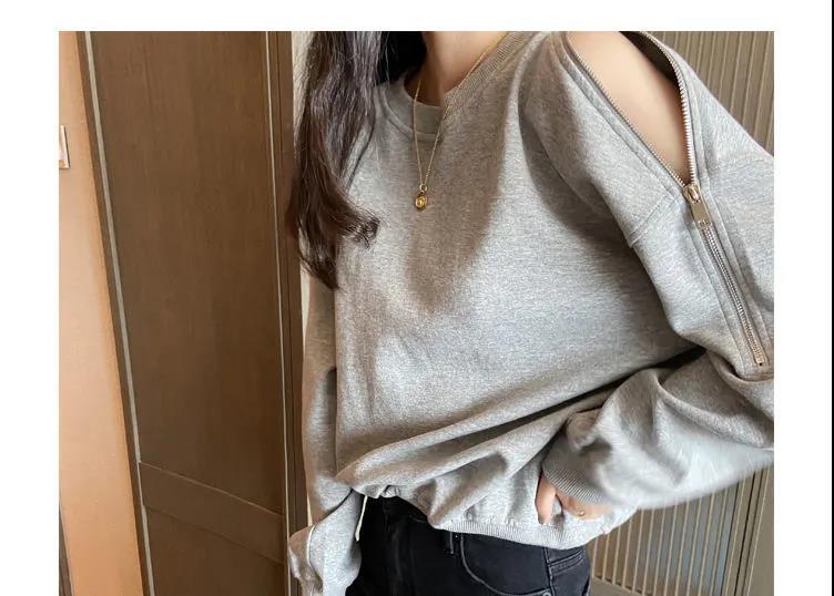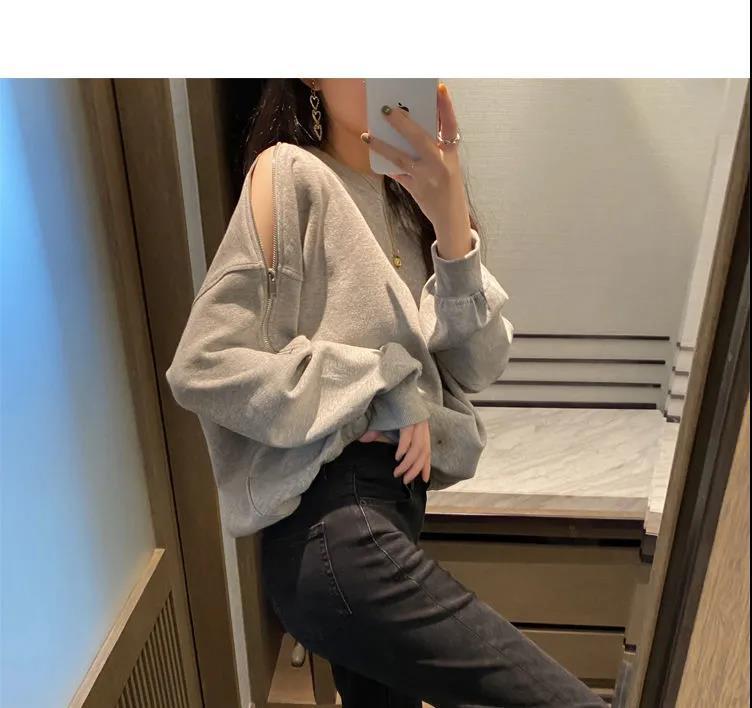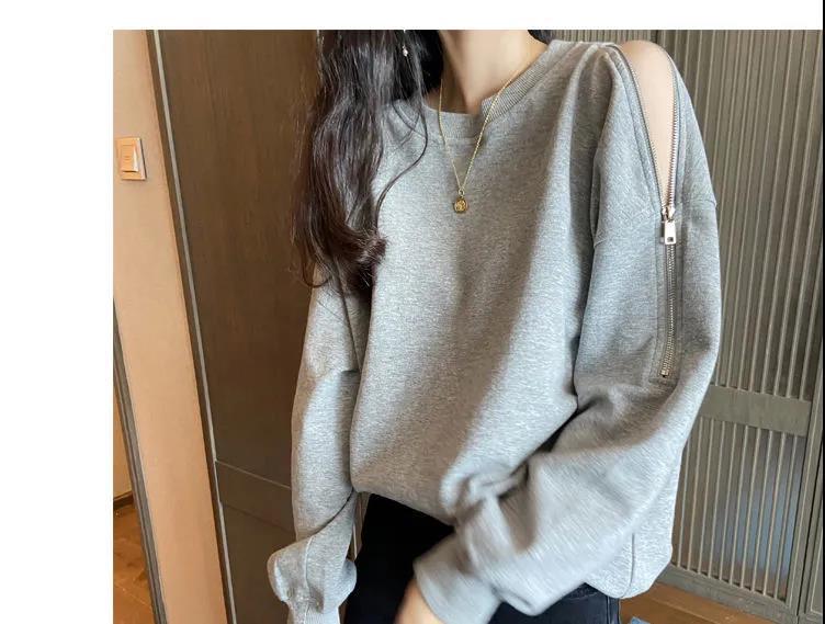 지퍼 오프 숄더 스웨터 여성의 2024 년 새로운 봄 긴 소매 조수 느슨한 단색 대형 여성의 국경 간 대외 무역스토어 가기