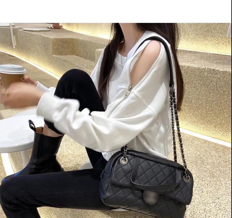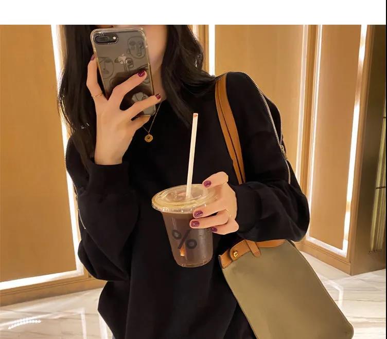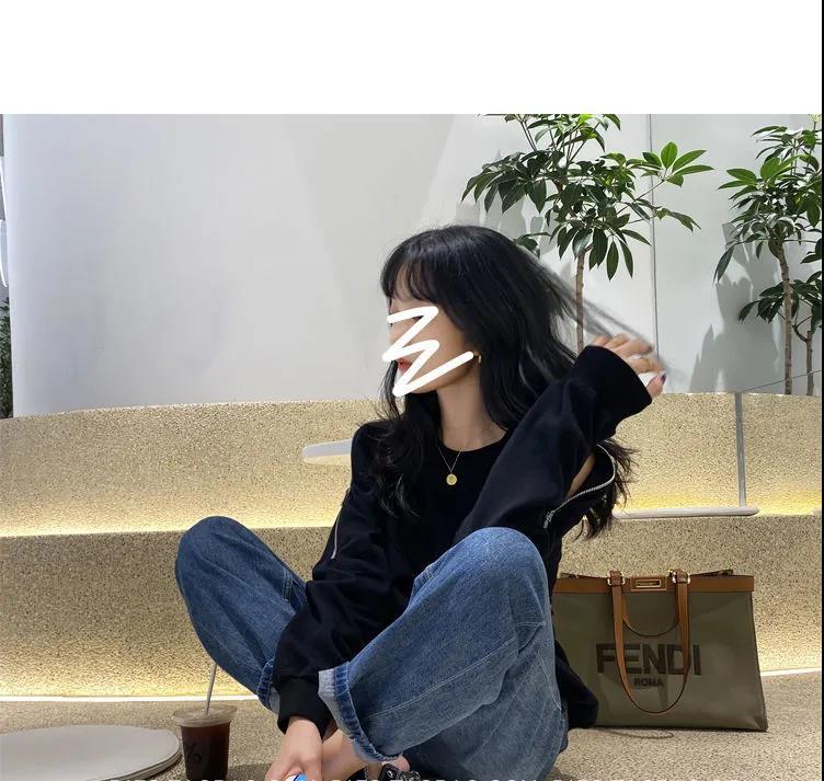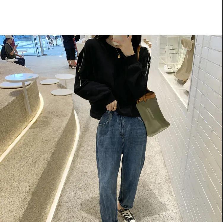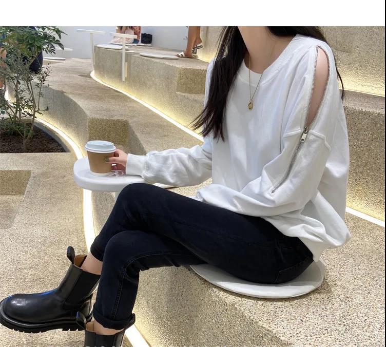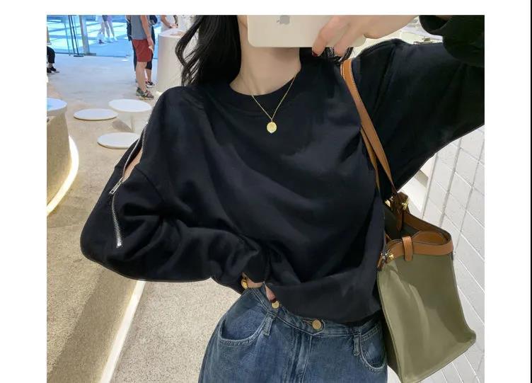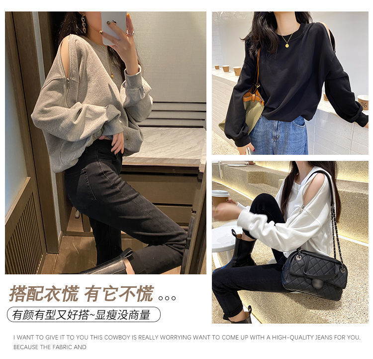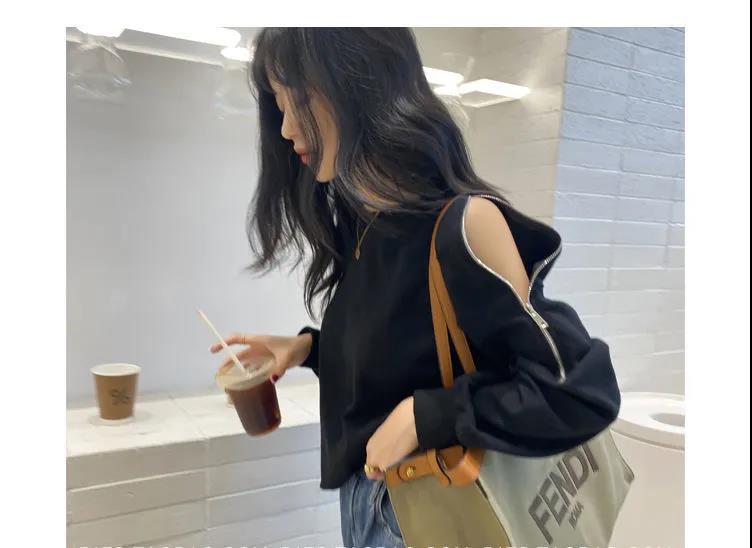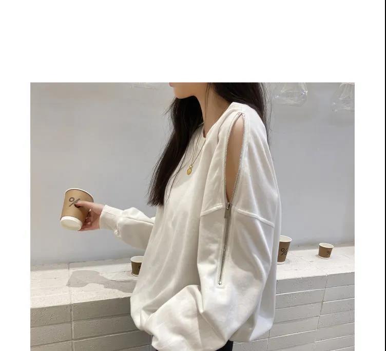 지퍼 오프 숄더 스웨터 여성의 2024 년 새로운 봄 긴 소매 조수 느슨한 단색 대형 여성의 국경 간 대외 무역스토어 가기