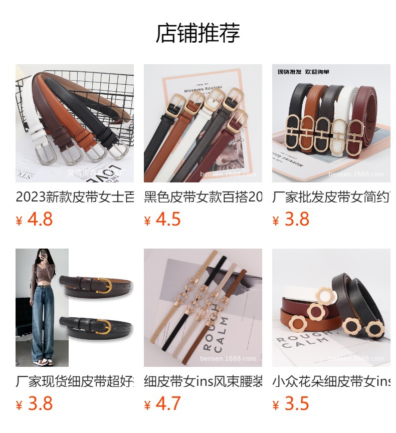 빨간색과 흰색 벨트 여성용 얇은 벨트 여성용 원피스 장식 작은 벨트 여성용 얇은 모든 경기 한국식 간단한 바지 벨트스토어 가기