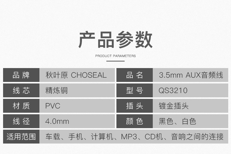 • 3.5mm 남성 대 남성 AUX 오디오 라인 QS3210A