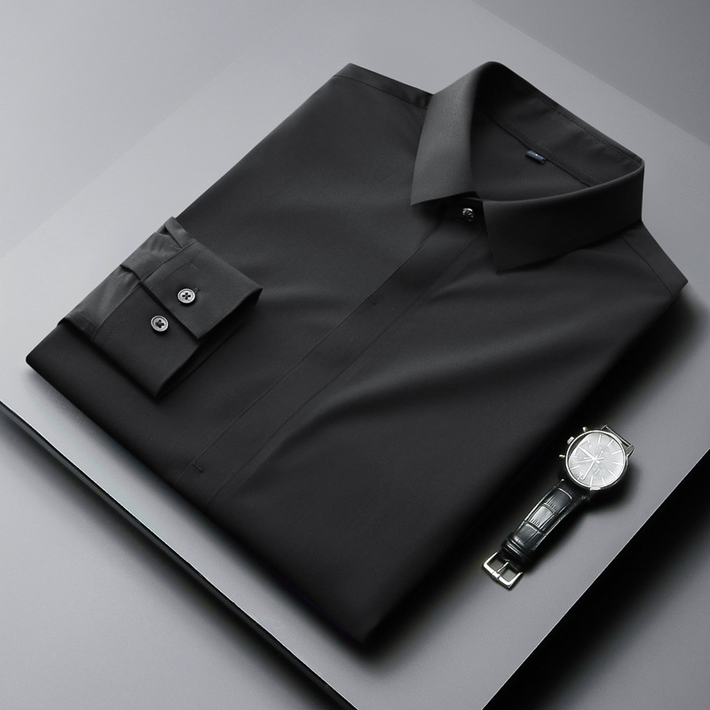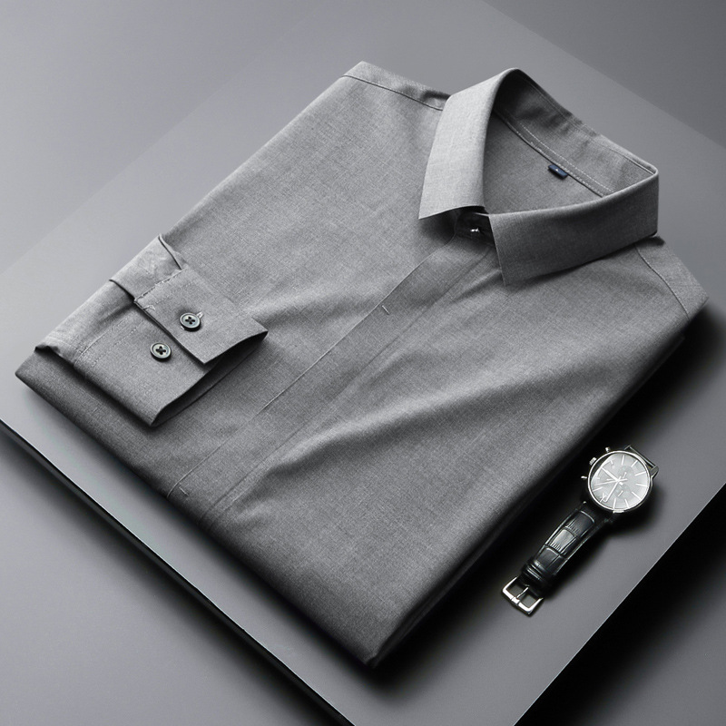 히든 버튼 셔츠 남성용 긴팔 비즈니스 캐주얼 고급 남성복 비 다림질 슬림핏 셔츠 원활한 접착 라이트 럭셔리 블루스토어 가기