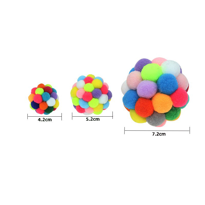 七彩毛绒球内置铃铛,轻微铃声和弹性适合猫咪,颜色一般随机是七彩色,单个无包装,50个一袋,需要定制可以联系客服。七彩猫咪球2_01