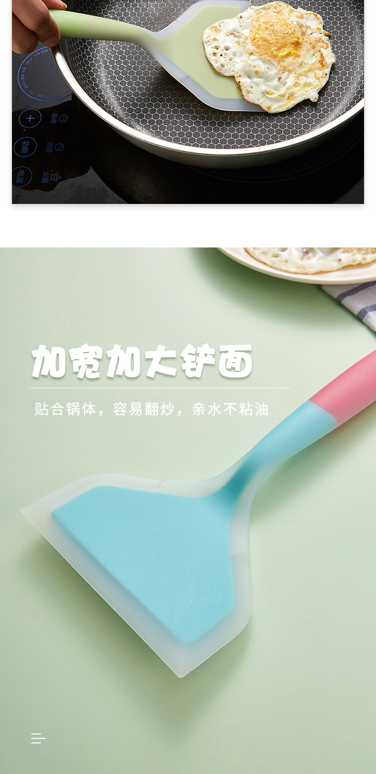 공장 직공급 실리콘 팬케이크 삽 비취 굽기 실리콘 주걱 평면 넓은 입 요리 주걱 고온 내성 주방 도구