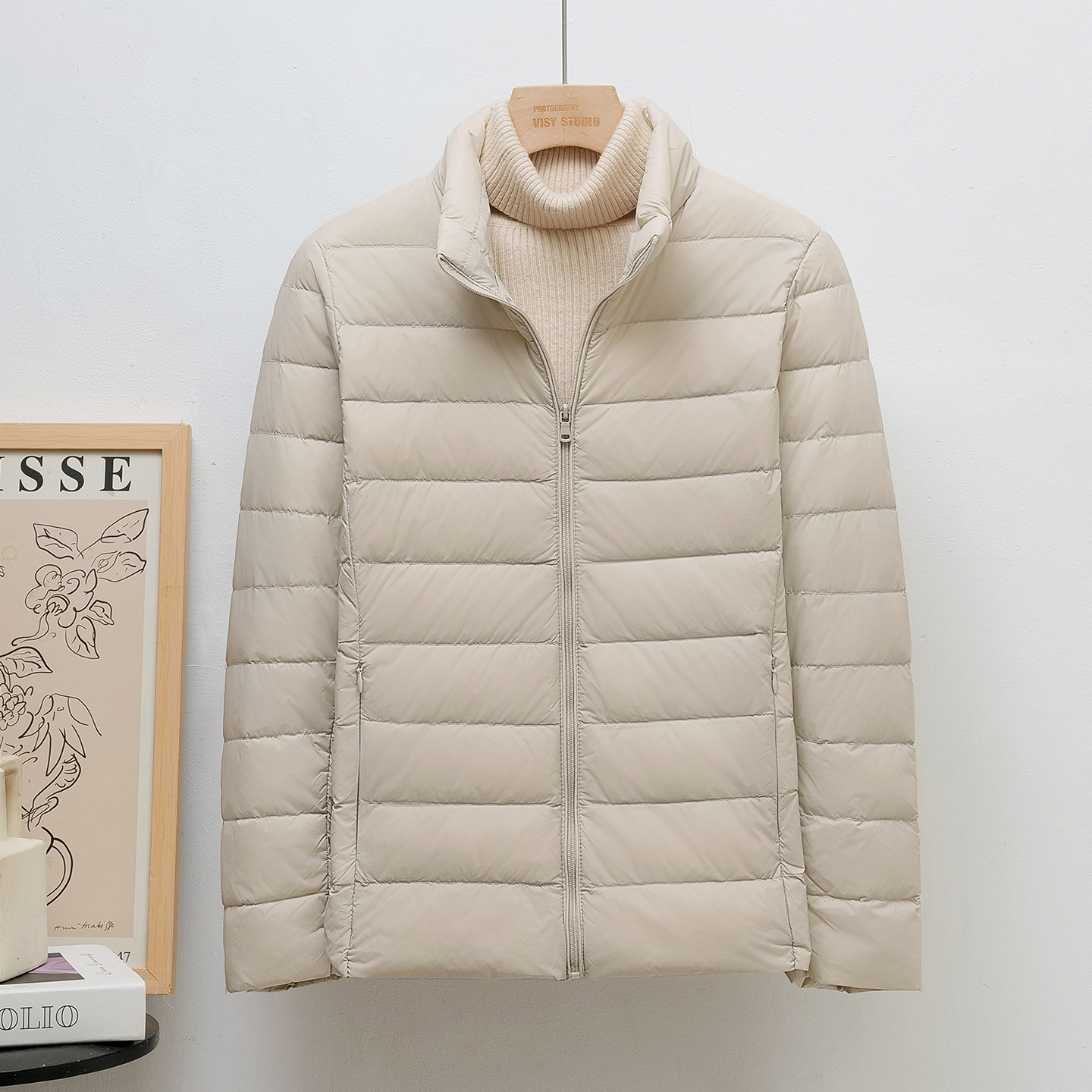 2024 새로운 경량 다운 재킷 후드 칼라 여성용 쇼트 라이트급 슬림 핏 한국식 화이트 덕 다운 재킷스토어 가기