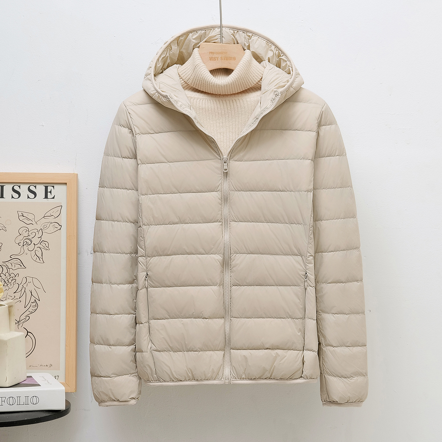 2024 새로운 경량 다운 재킷 후드 칼라 여성용 쇼트 라이트급 슬림 핏 한국식 화이트 덕 다운 재킷