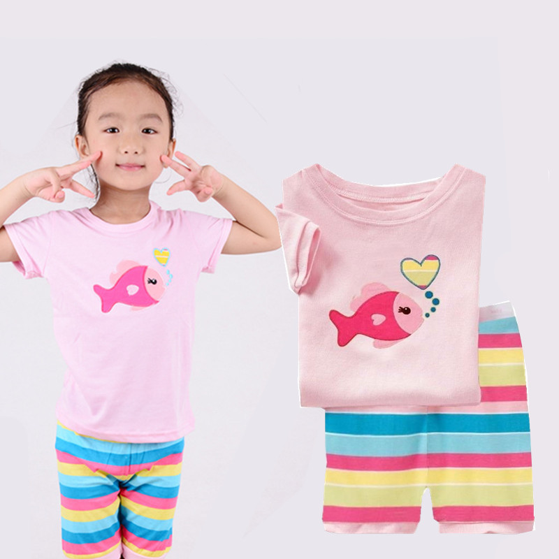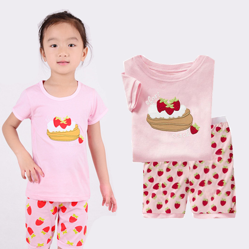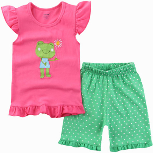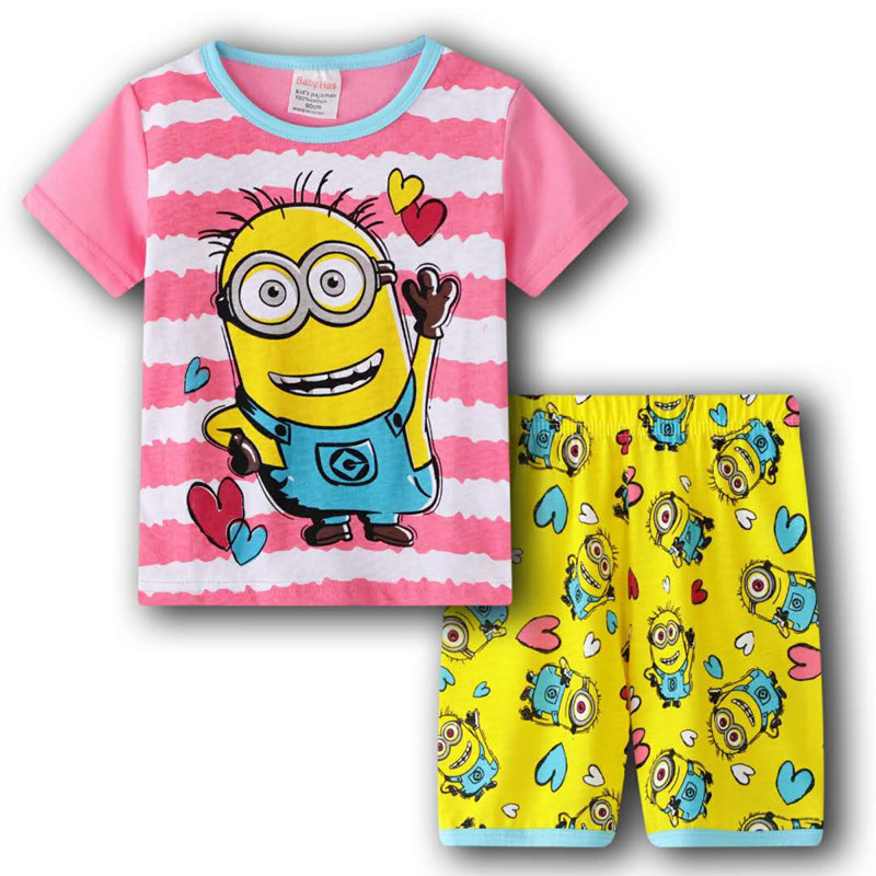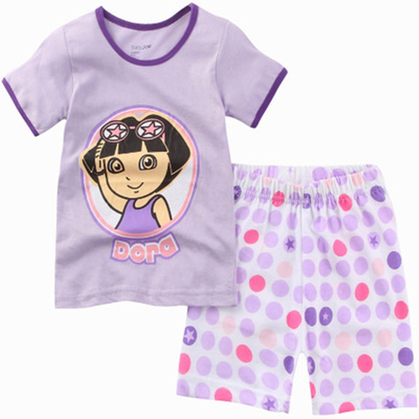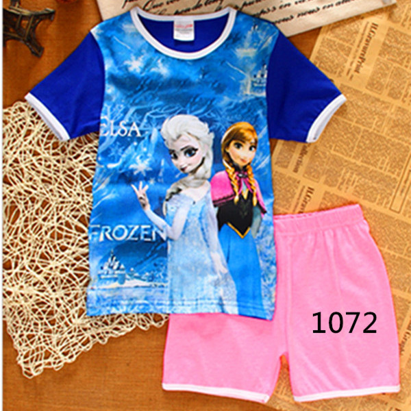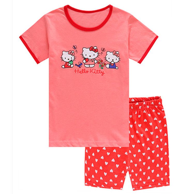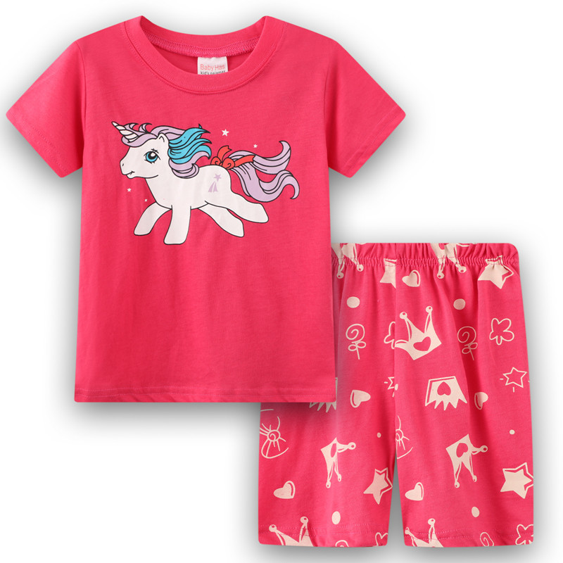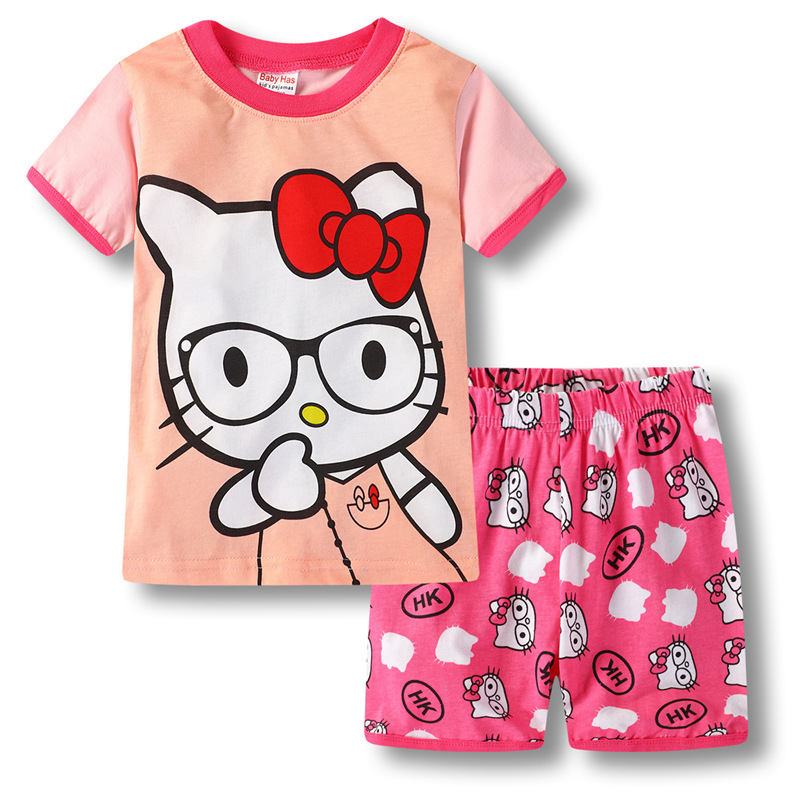 재고 면 소녀 반소매 반바지 어린이 만화 소녀 공주 라운드 넥 잠옷 가정 의류 캐주얼 세트 티셔츠