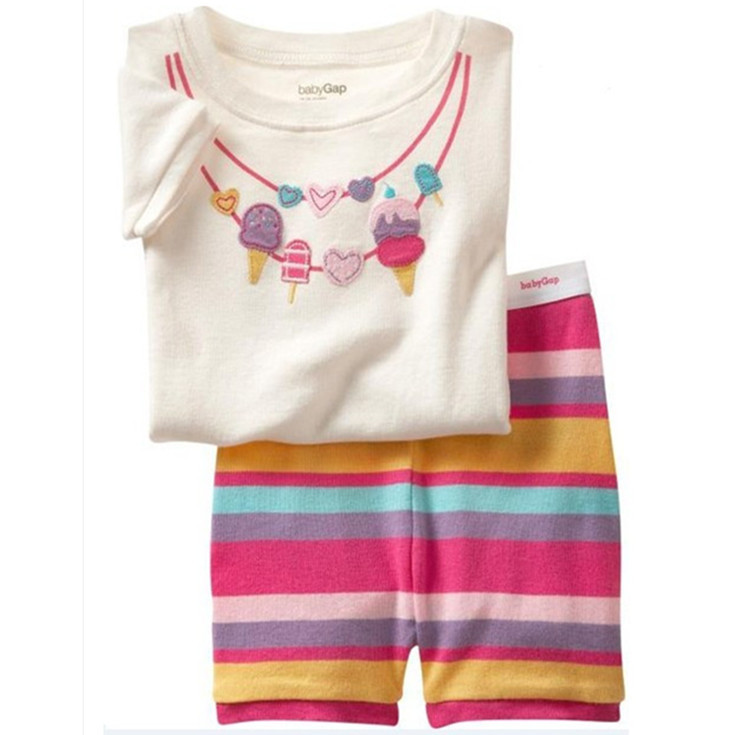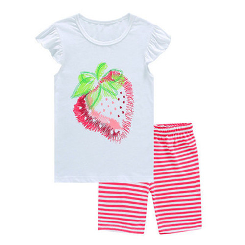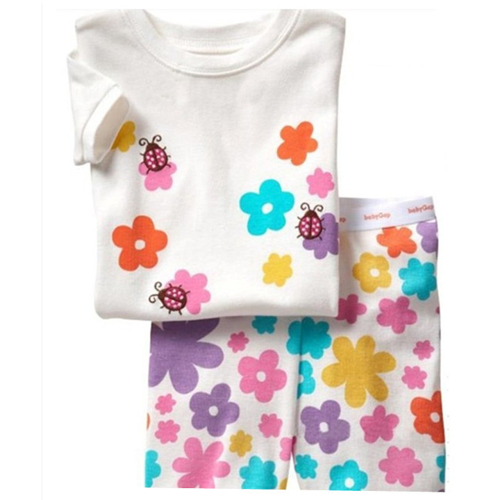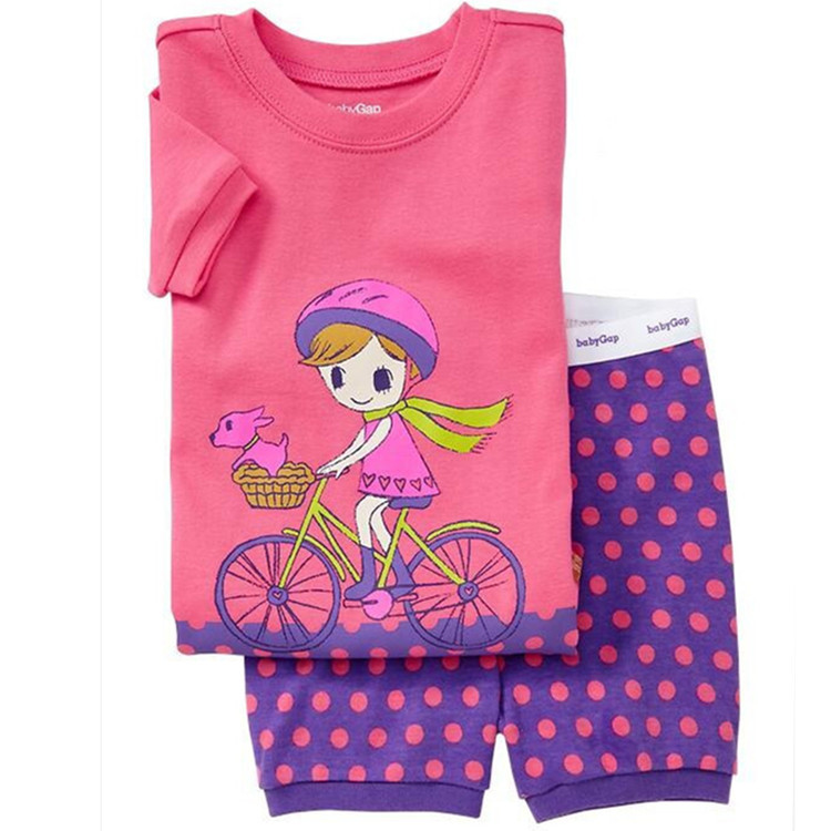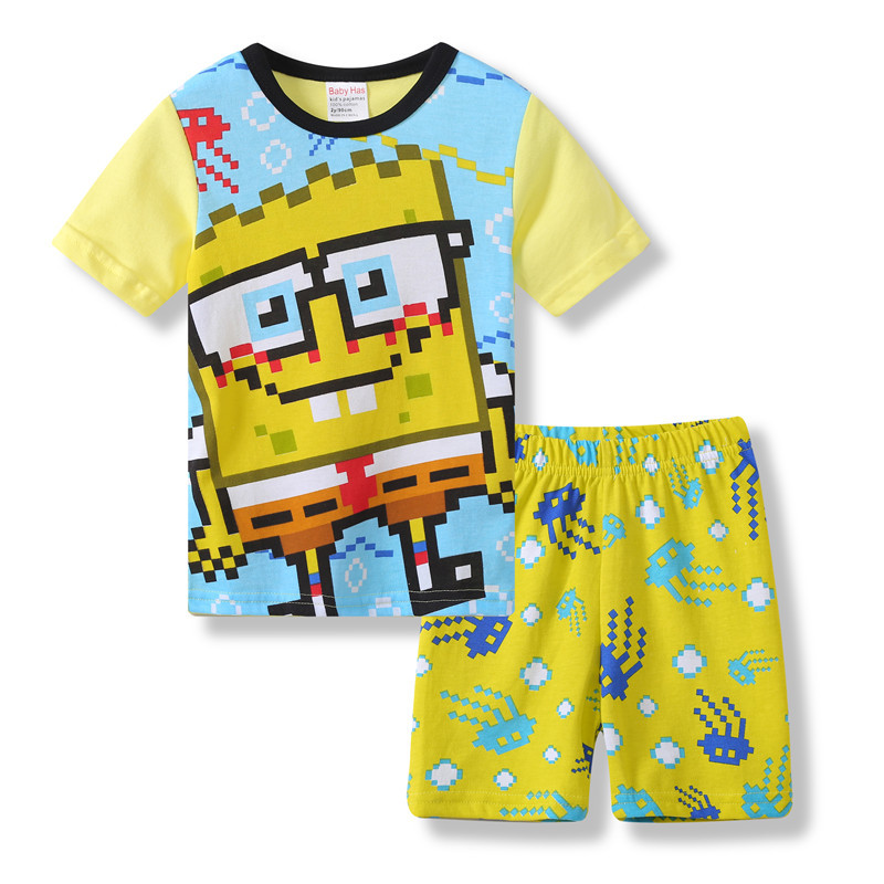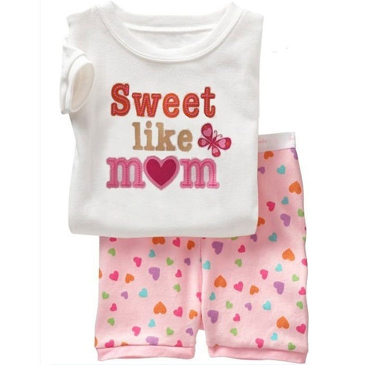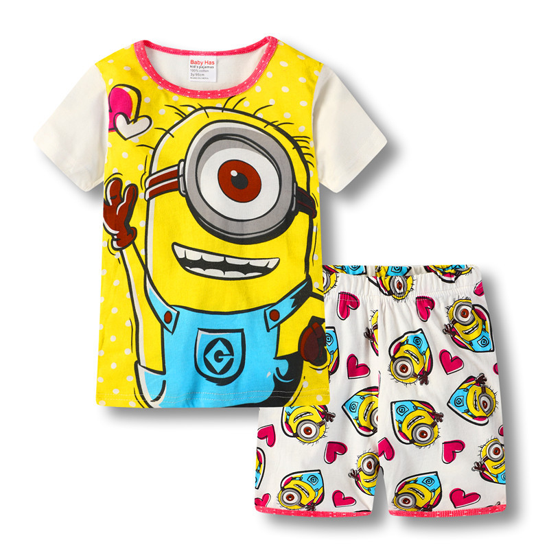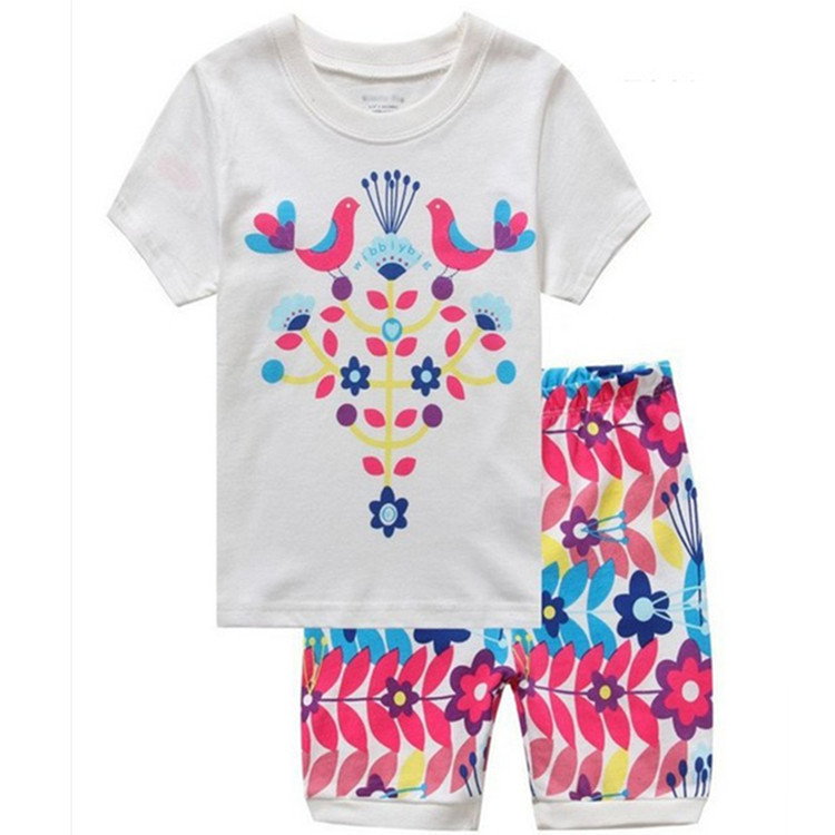 재고 면 소녀 반소매 반바지 어린이 만화 소녀 공주 라운드 넥 잠옷 가정 의류 캐주얼 세트 티셔츠