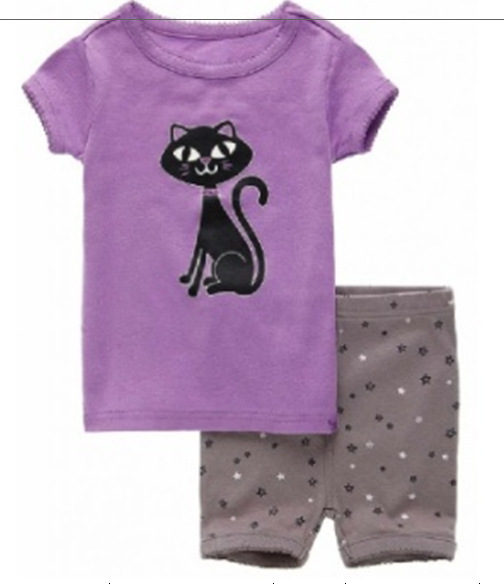 재고 면 소녀 반소매 반바지 어린이 만화 소녀 공주 라운드 넥 잠옷 가정 의류 캐주얼 세트 티셔츠스토어 가기
