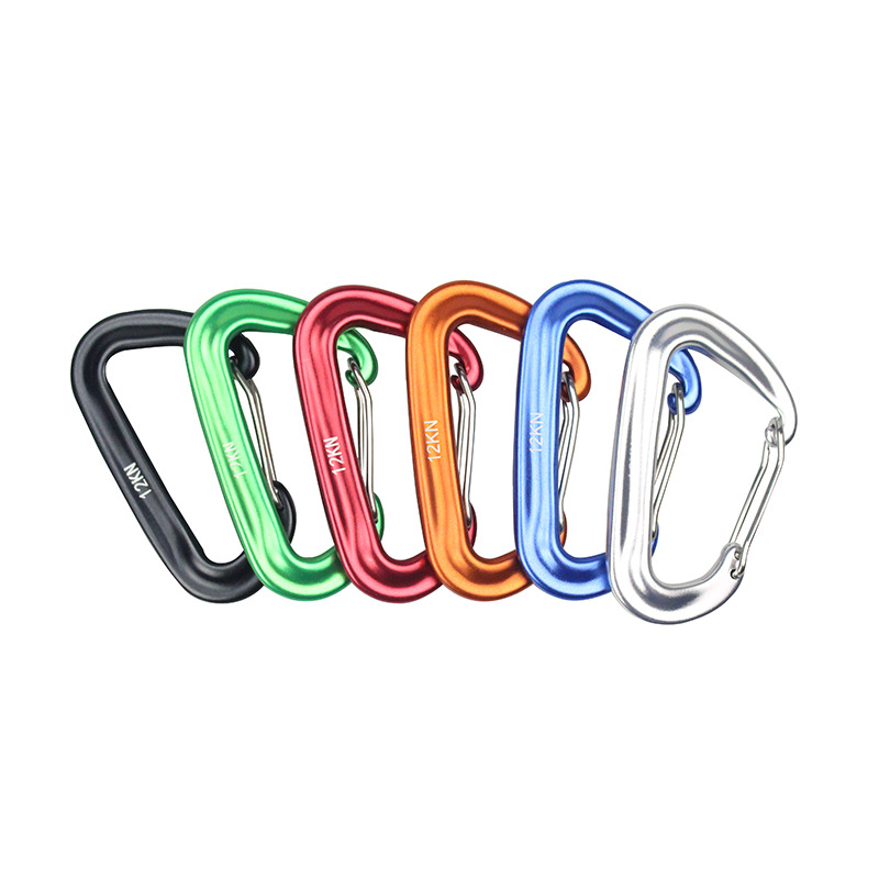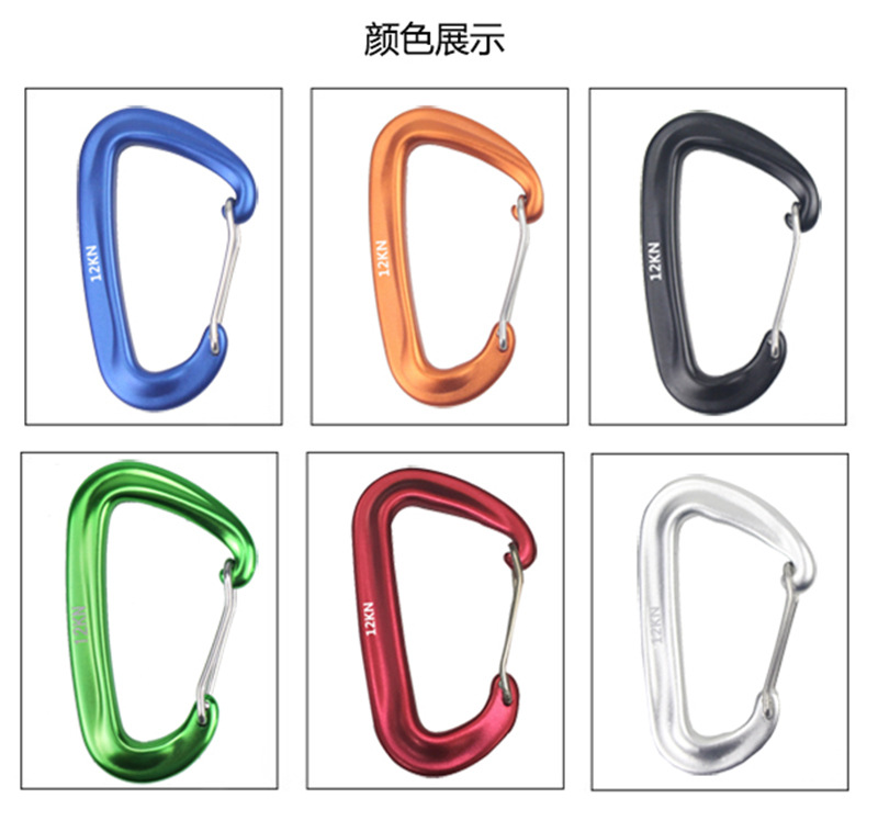 品名:7075航空铝12KN攀岩攀登快挂D型登山扣吊床瑜伽高强度扣弹簧钩