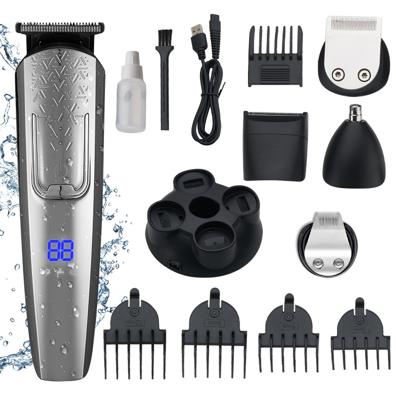 基本配置:T型刀,U型刀,鼻毛修剪器,剃须刀,刻字刀,限位梳,USB线,外文说明书,清洁刷,润滑油,收纳盒