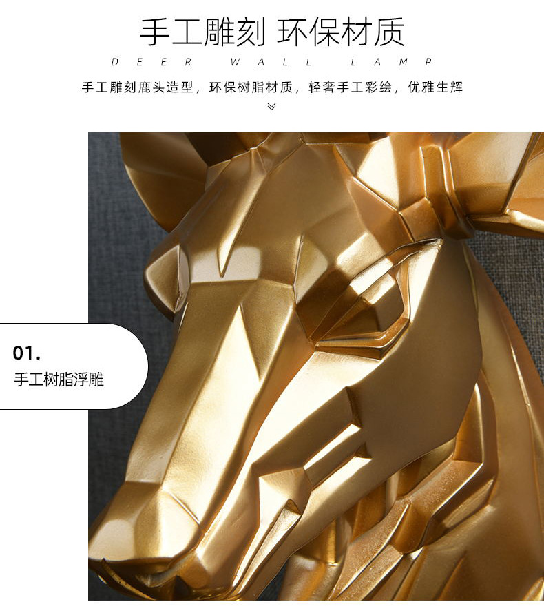 행운의 사슴 머리 벽 램프 창조적 인 기하학 거실 배경 벽 침실 계단 베란다 호텔 클럽 엔지니어링 램프 장식스토어 가기