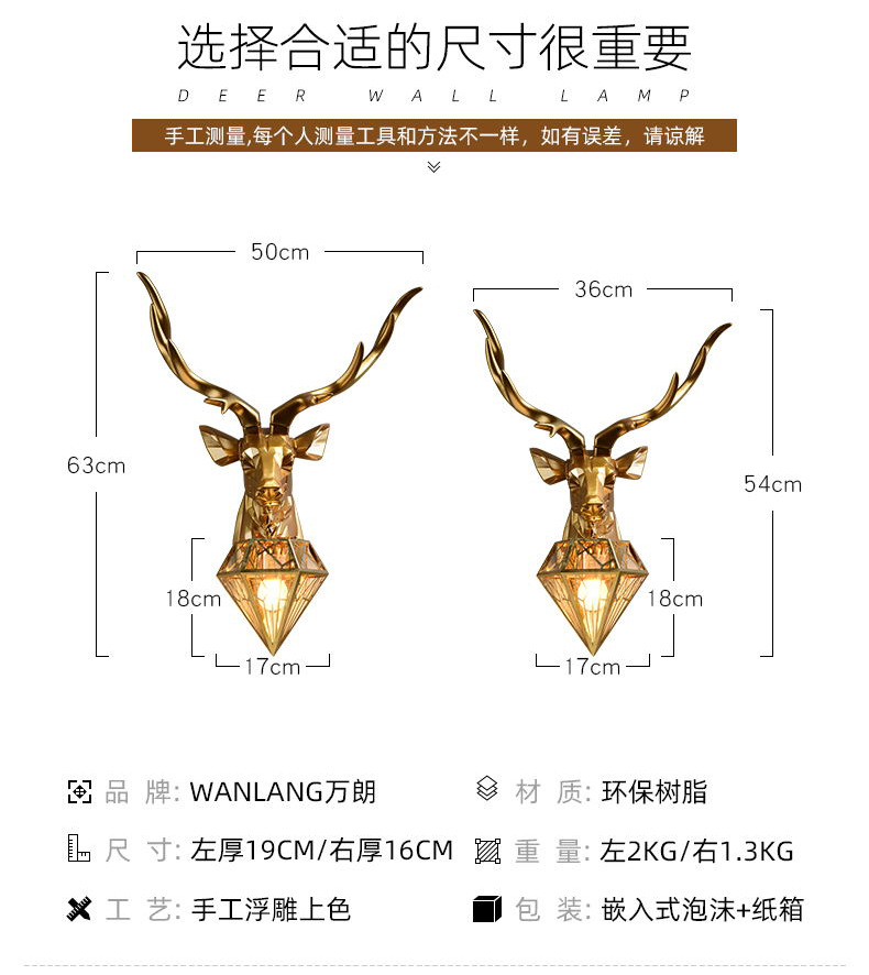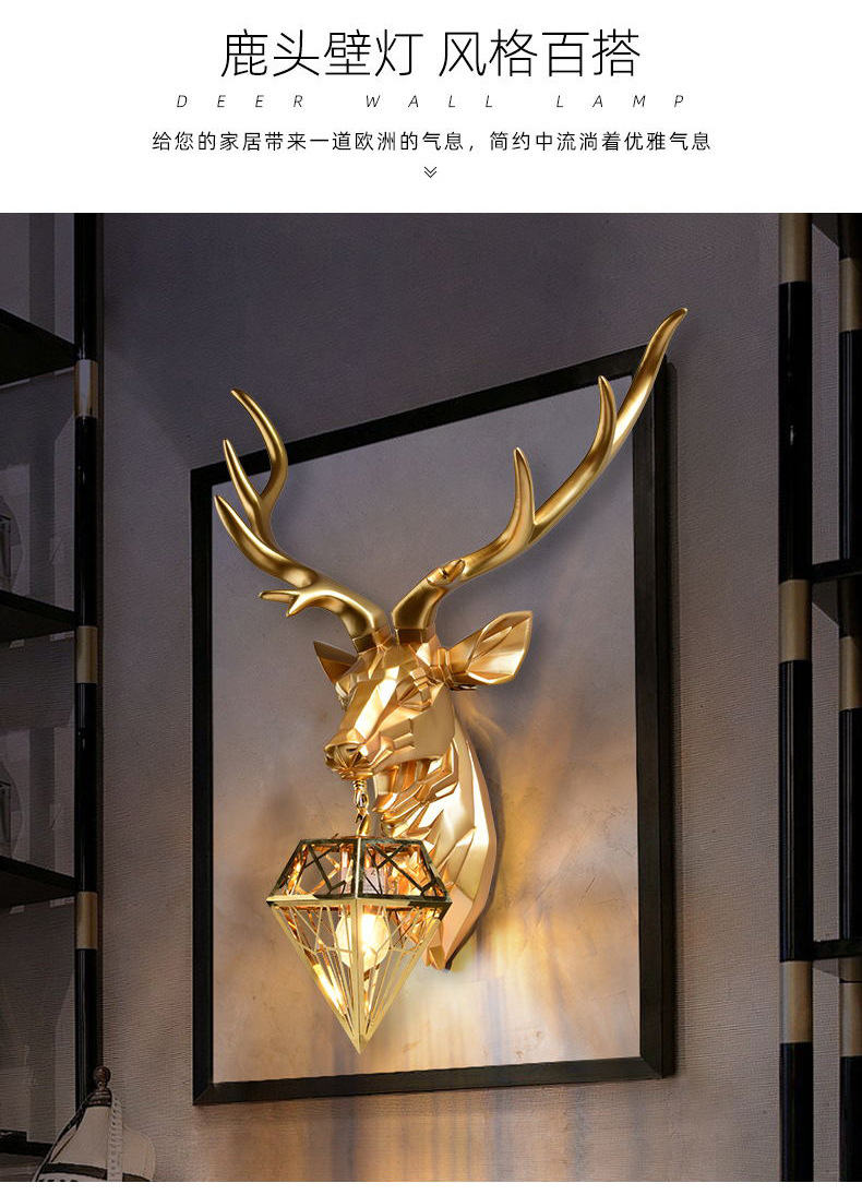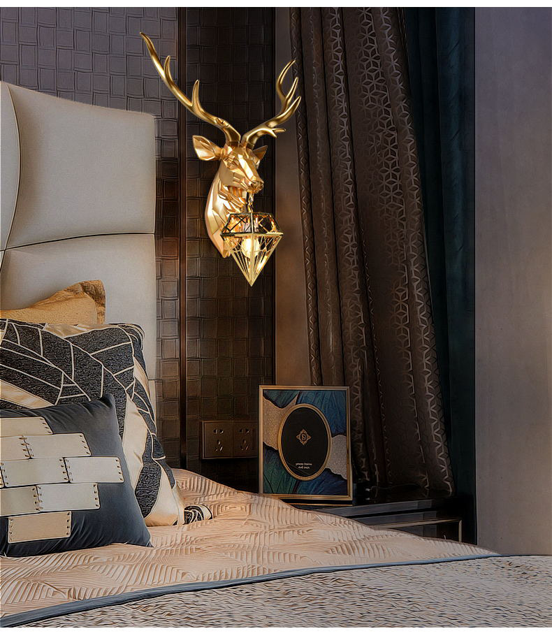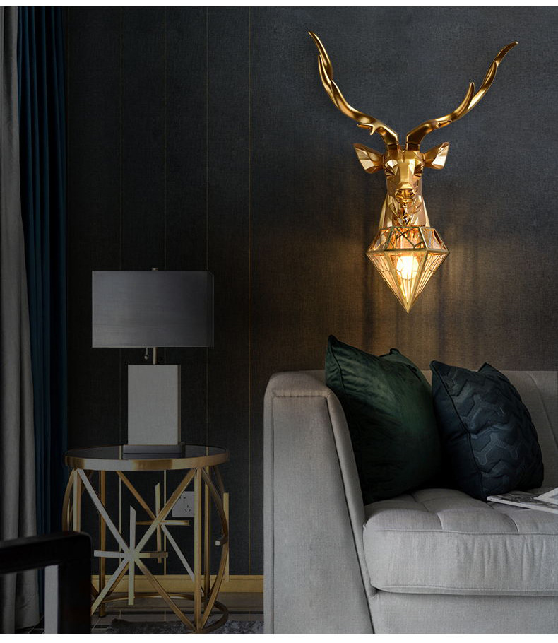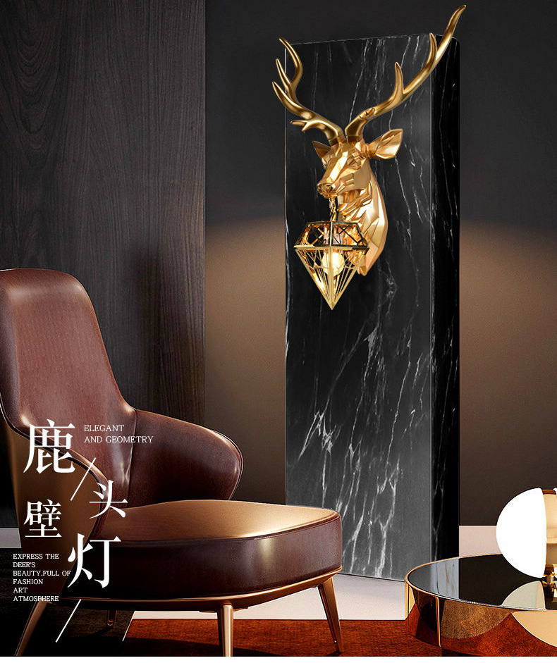 행운의 사슴 머리 벽 램프 창조적 인 기하학 거실 배경 벽 침실 계단 베란다 호텔 클럽 엔지니어링 램프 장식