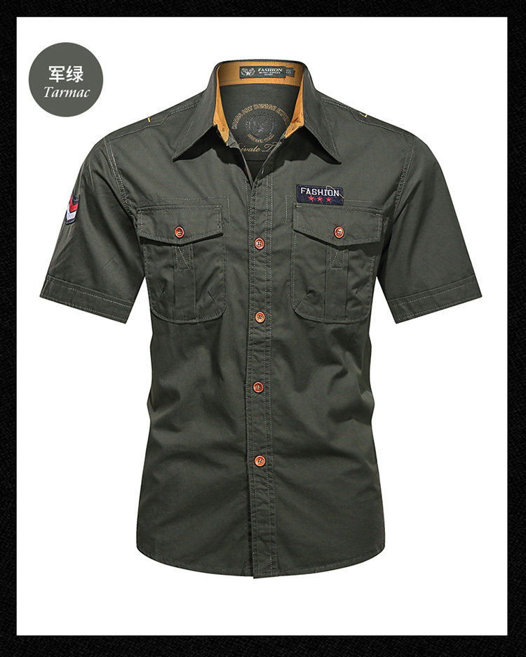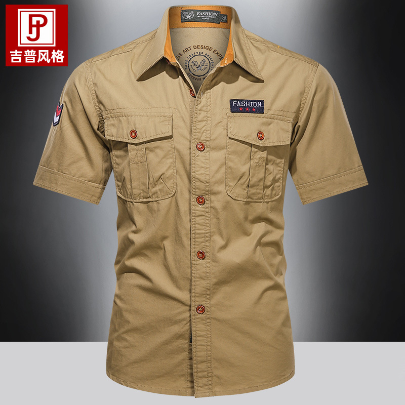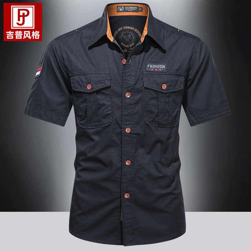 이그제큐티브 여름용 더블 포켓 반팔 셔츠 면 2026 신상 남성 캐주얼 워크웨어 반팔 셔츠 얇은스토어 가기