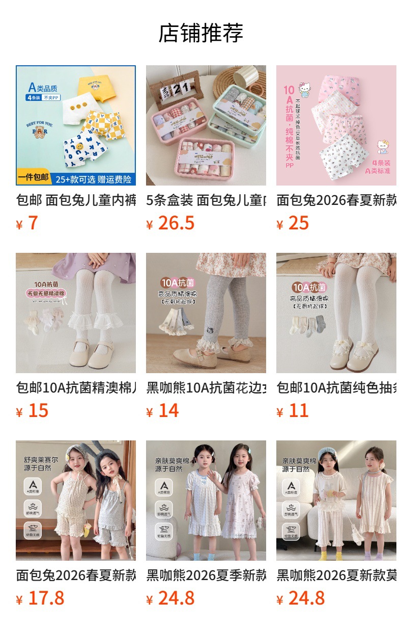 빵토끼 아동 속옷 순면 A급 면 여아 속옷 봄 여름 아기 사각팬티 남녀 아동 속옷스토어 가기