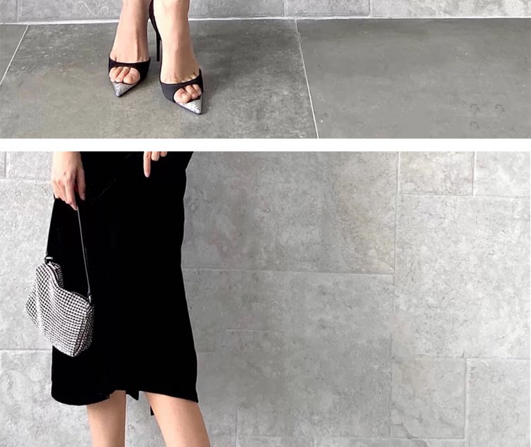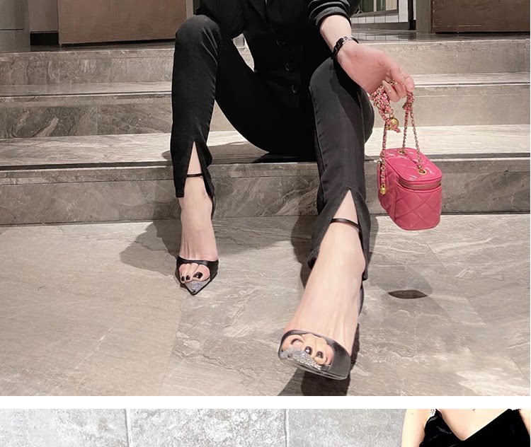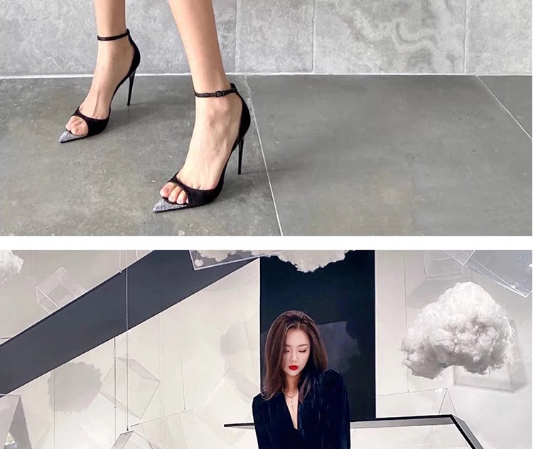 하이힐 2021 여름 새로운 스타일 오픈 토 포인티드 다이아몬드 스터드 스틸레토 힐 샌들 여성용 올매치 섹시한 로마 신발스토어 가기