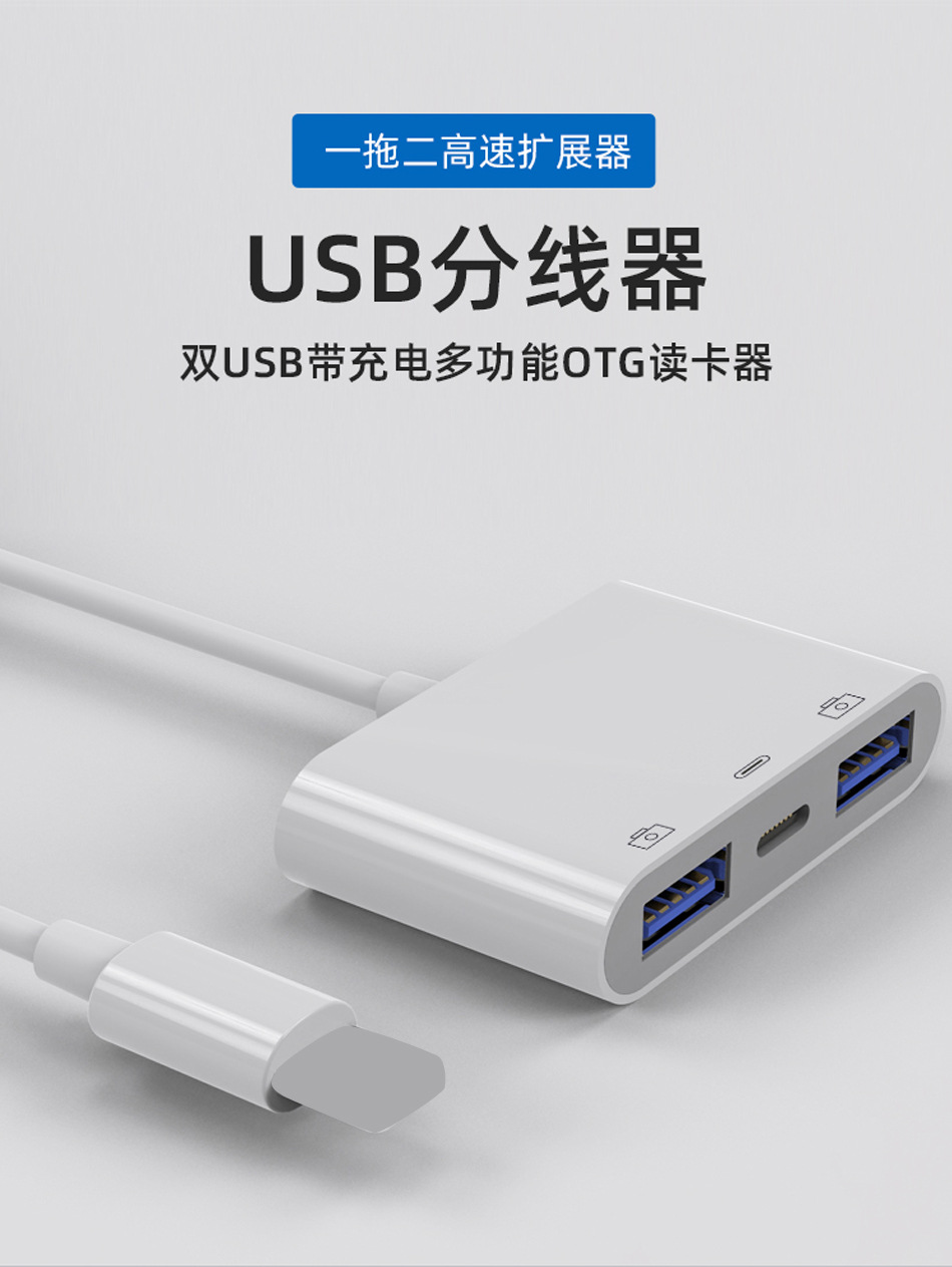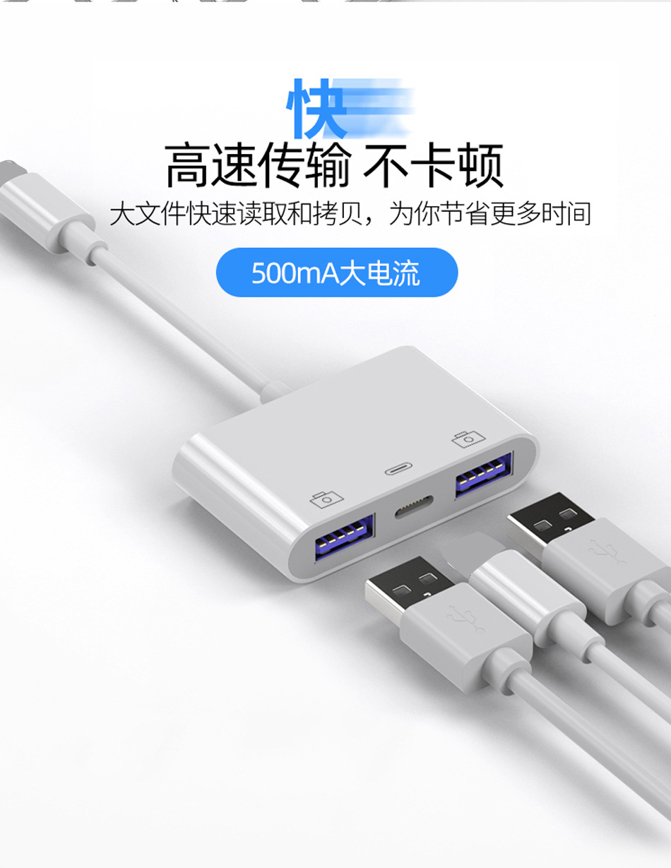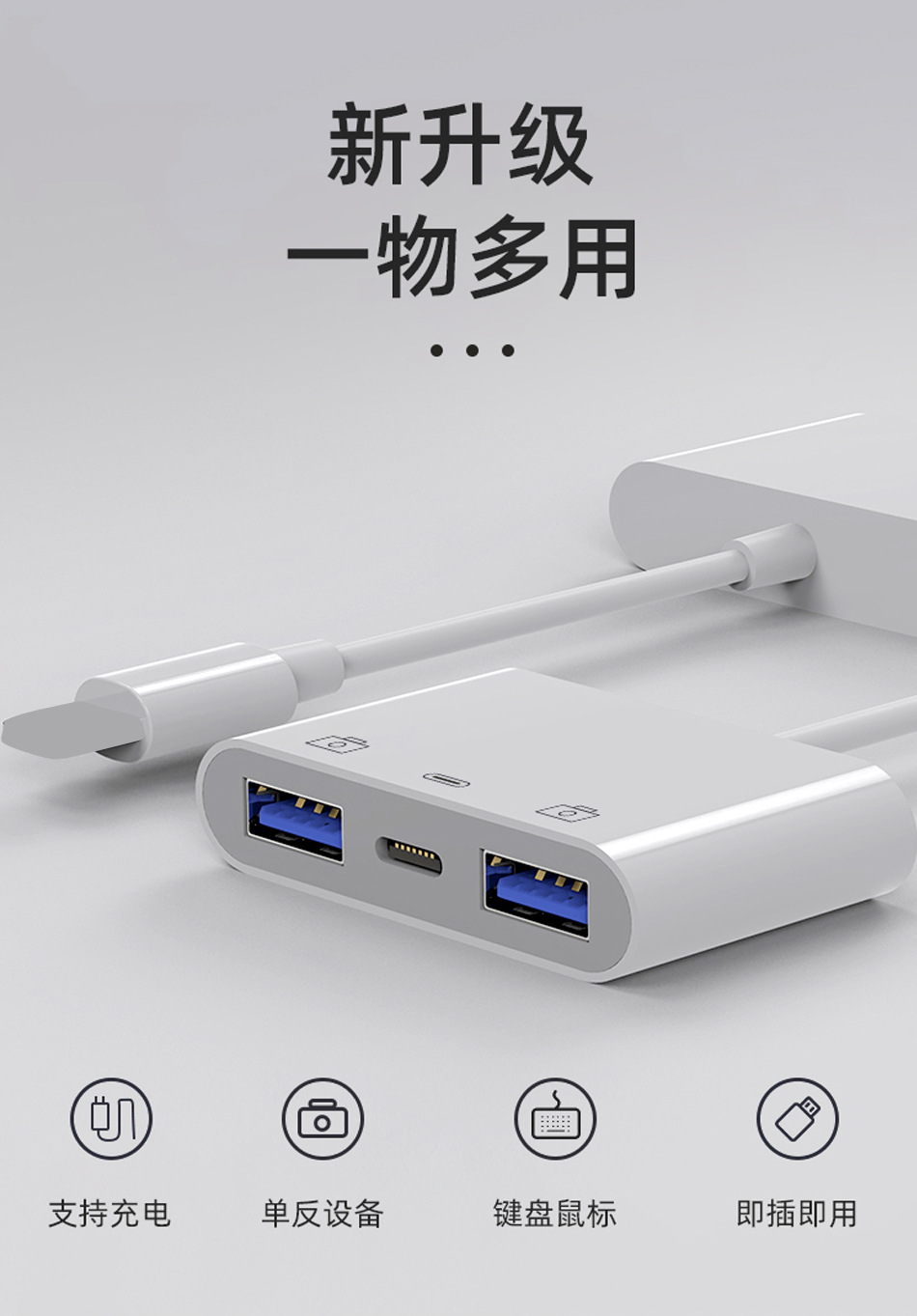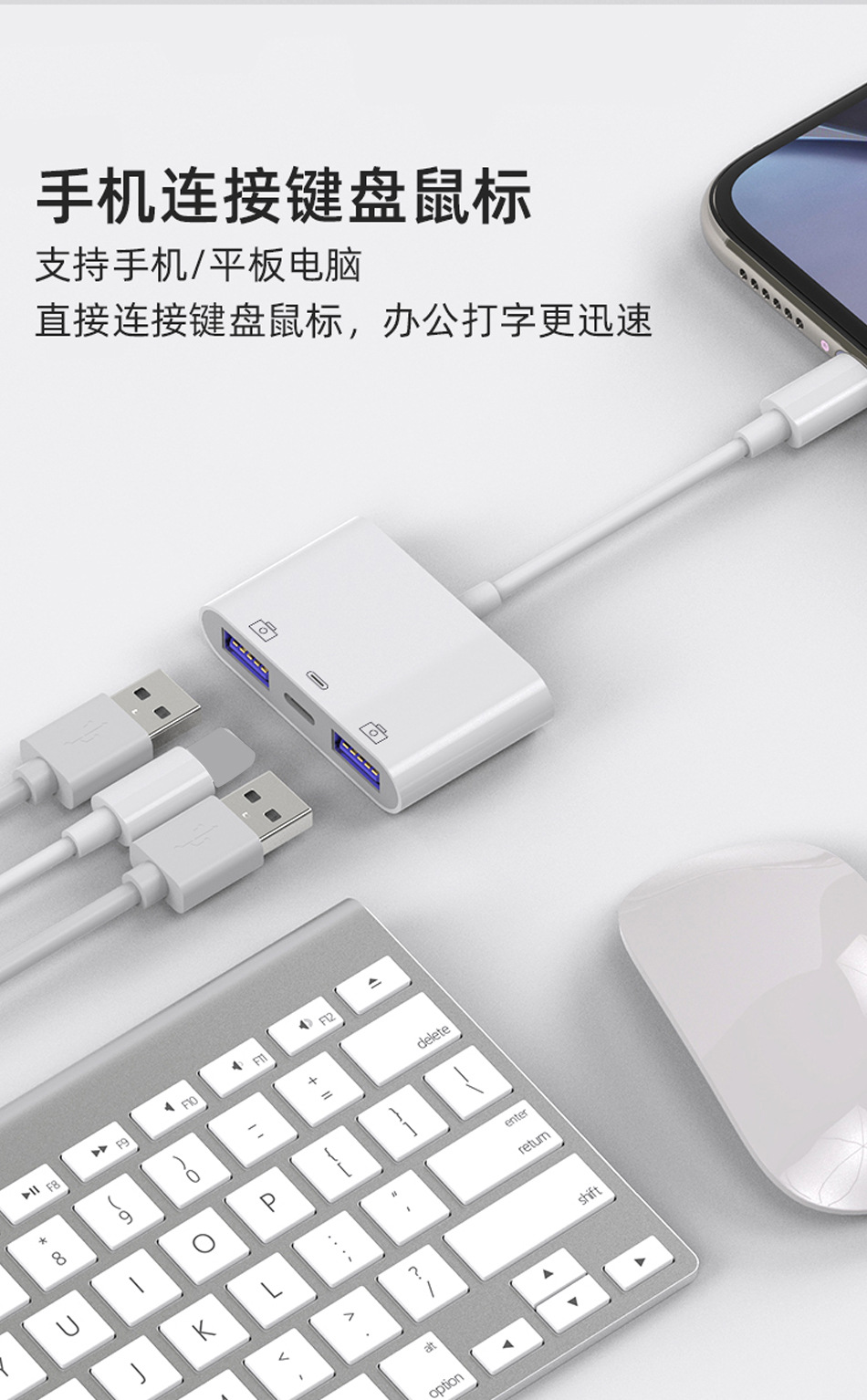 마우스 U 디스크 키보드 듀얼 USB 어댑터 3.0 OTG 어댑터를 연결하는 Apple 3-in-one 어댑터에 적합스토어 가기