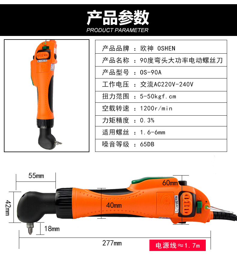 Oushen 전기 스크루 드라이버 스트레이트 핸들 전기 스크루 드라이버 작은 Luo 드라이버 220V 스트레이트 플러그 인 대형 토크 90 도