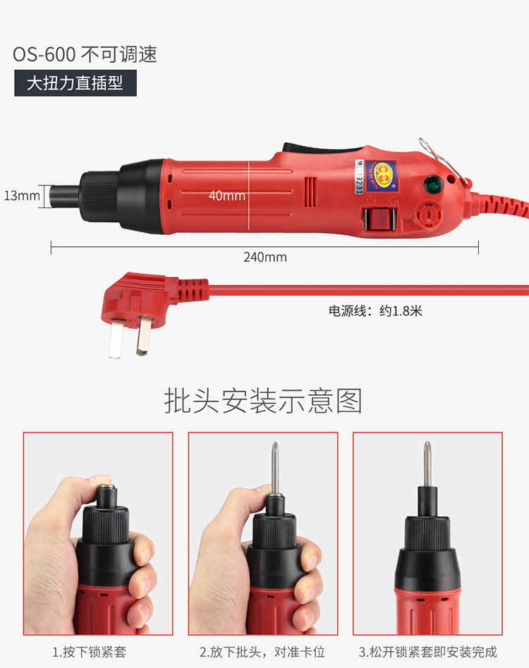 • OS-600-1/4(육각형 인터페이스는 속도를 조정할 수 없음) 220V 직접 플러그