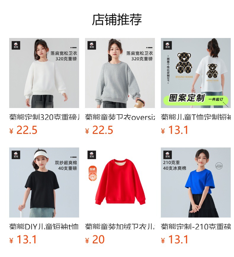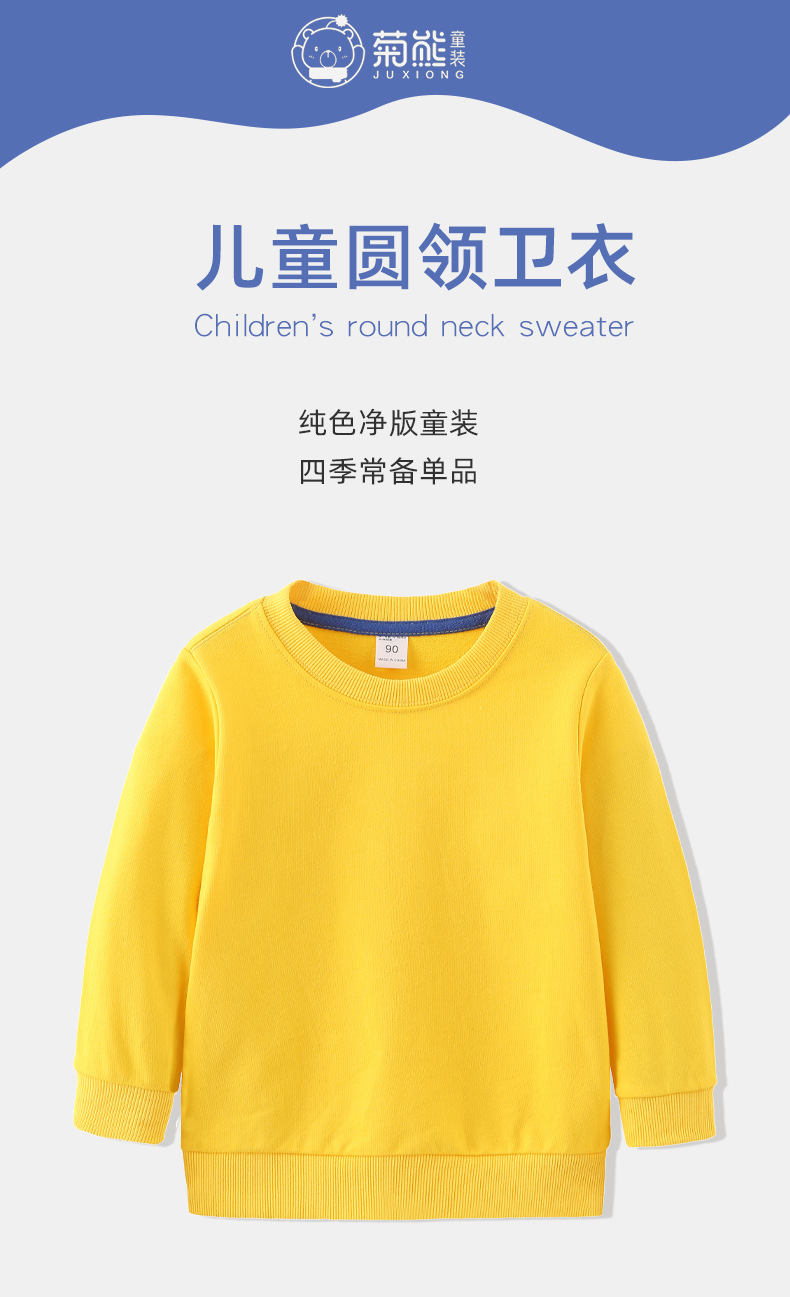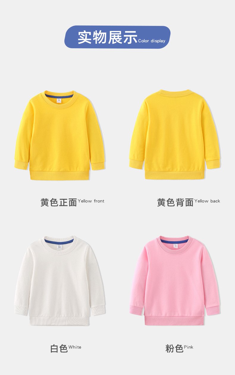 儿童卫衣纯棉春秋毛圈薄款纯色空白圆领长袖外套头衫品牌童装批发