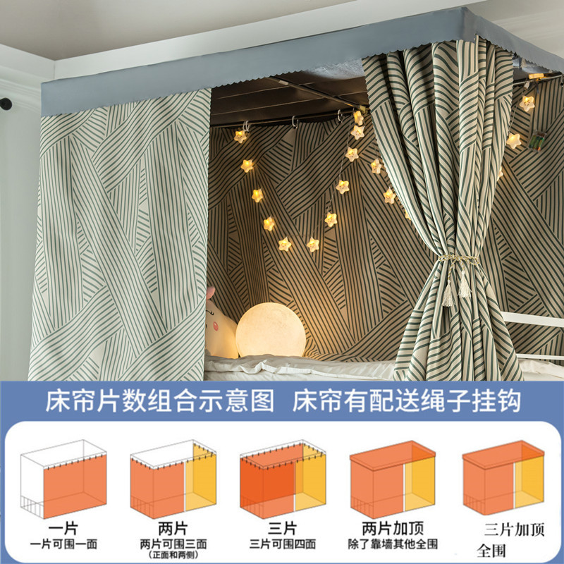 기숙사 침대 커튼 학생 블라인드 커튼 상단 하단 하단 여성용 두꺼운 가리 하트 침대 커튼 간단한 Instagram 스타일 침실 모기장스토어 가기