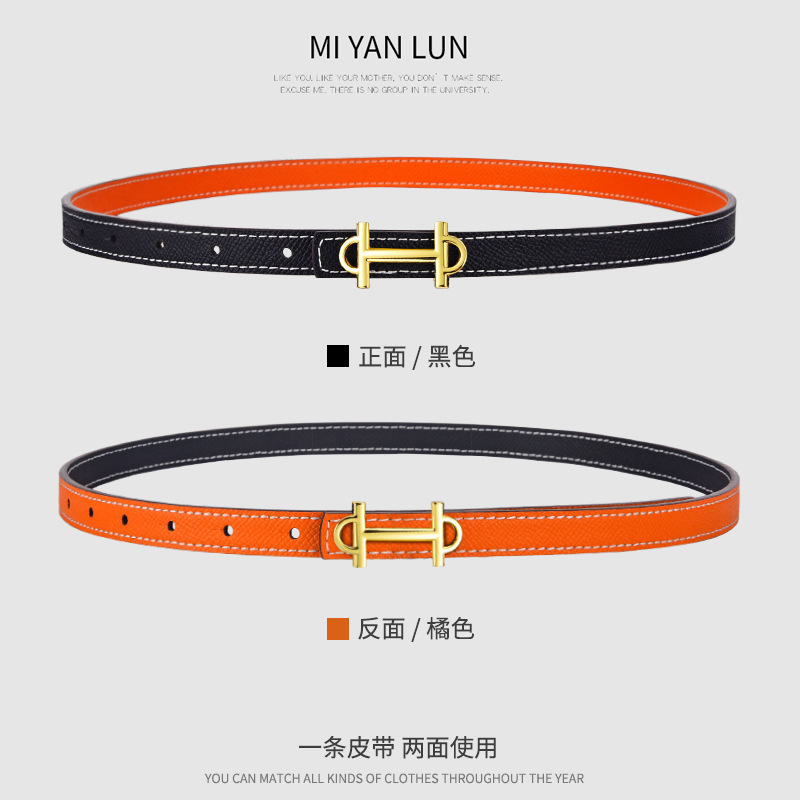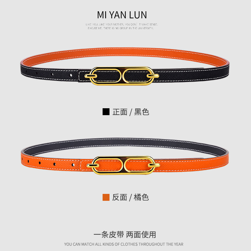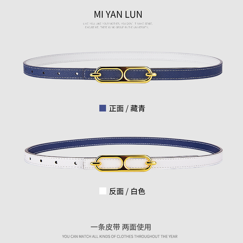 여성용 양면 가죽 패션 벨트, 여름용 스커트와 드레스에 잘 어울리는 슬림핏 허리 장식 벨트, 얇은 스타일