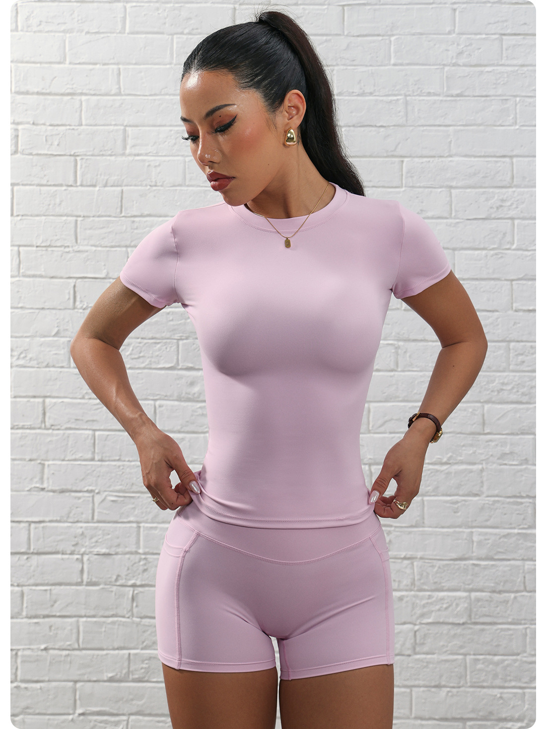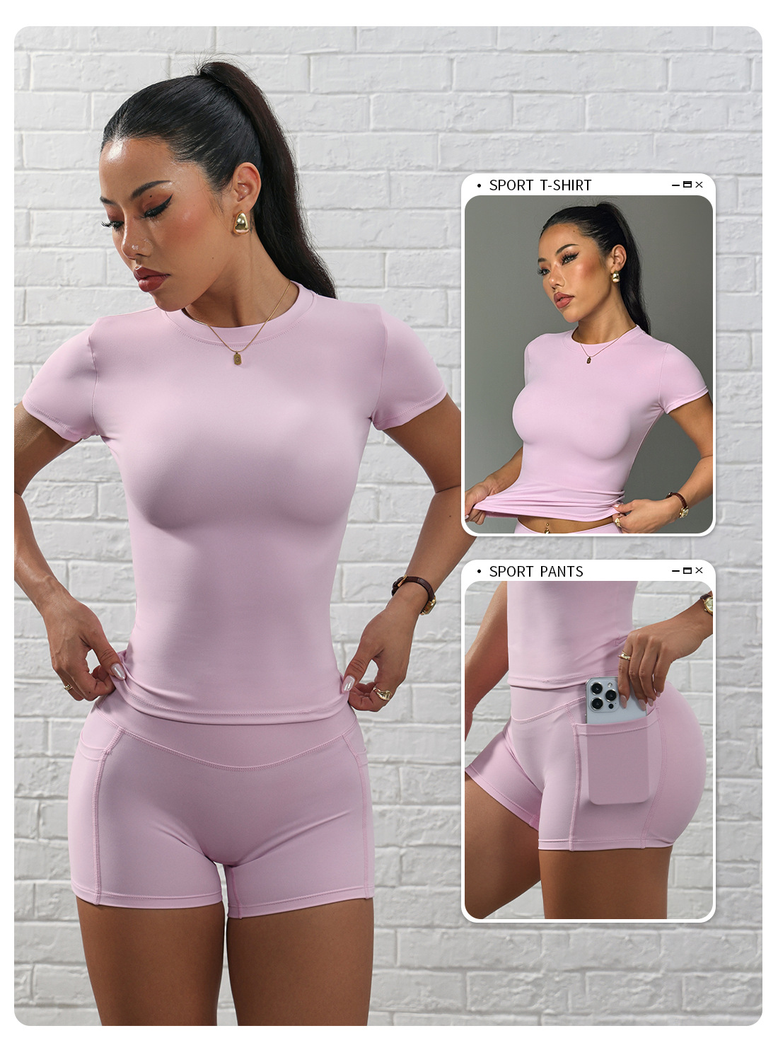 유럽과 미국의 국경 간 인기 여름 요가 슈트 반팔 요가 반바지 슈트 여성용 투피스 고급 요가 슈트