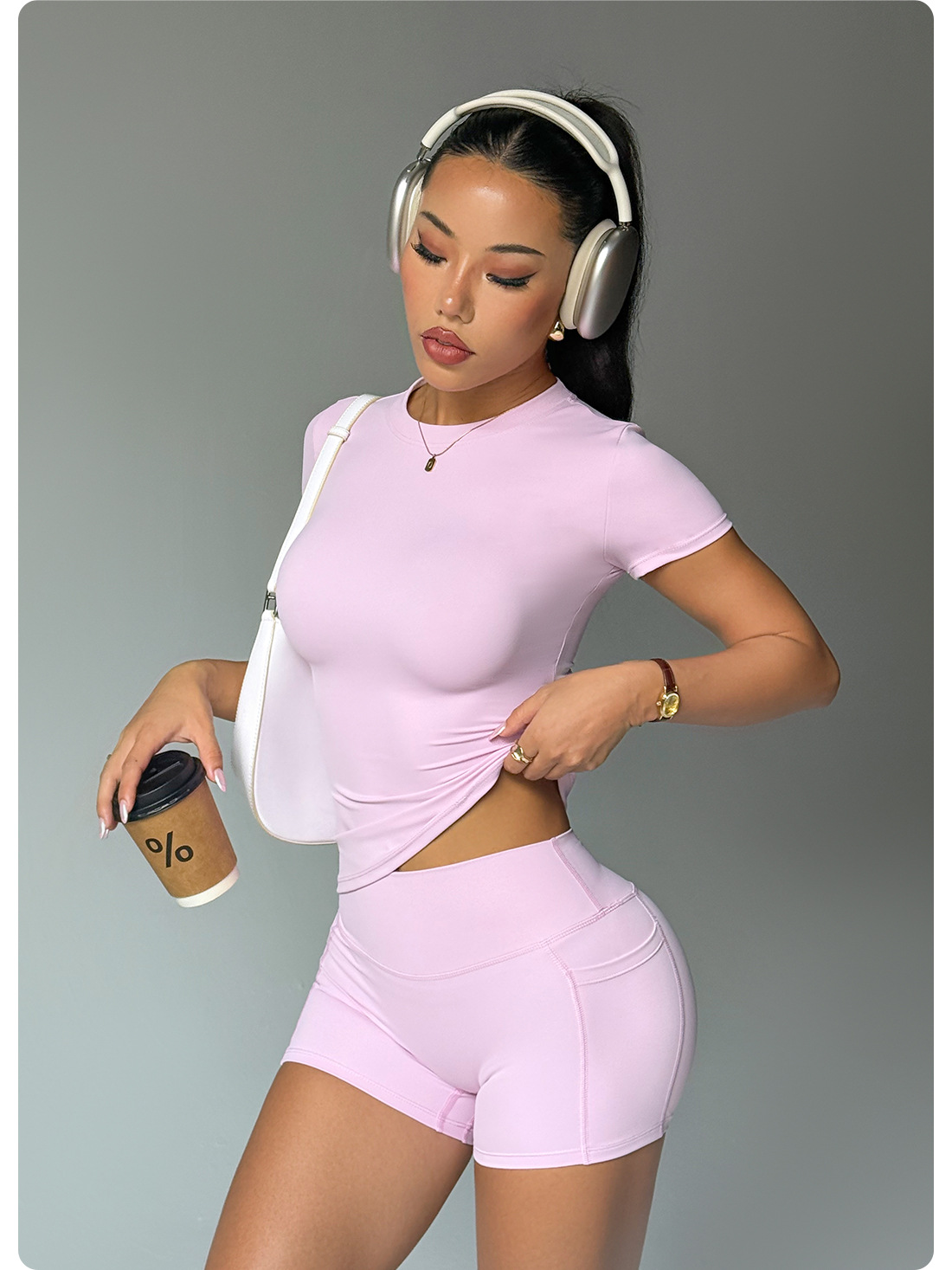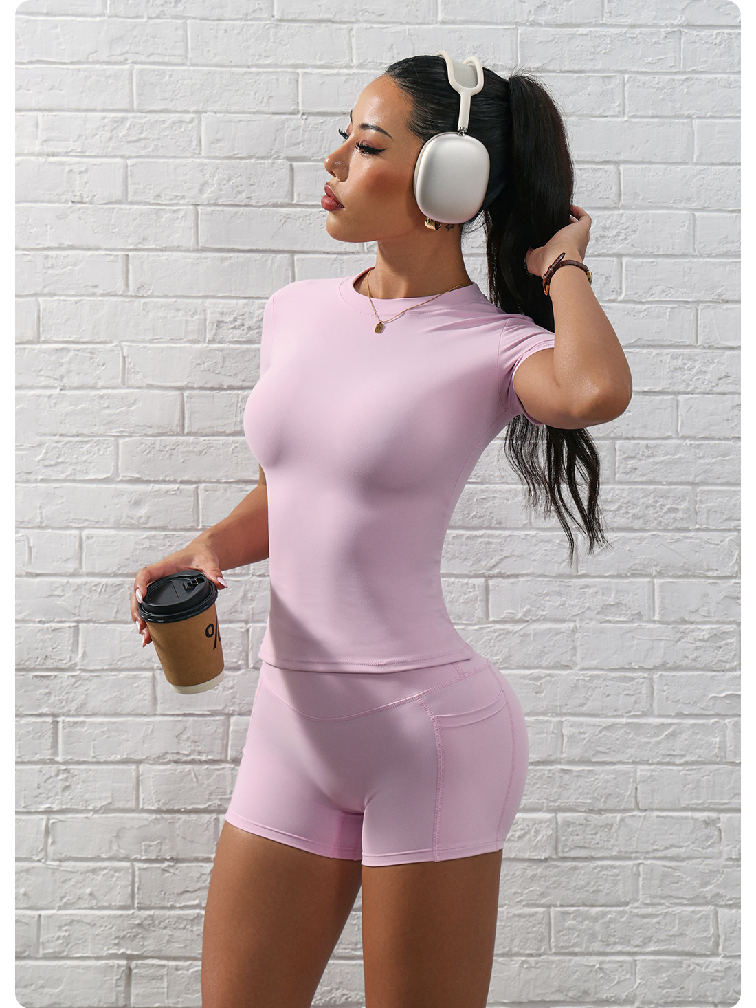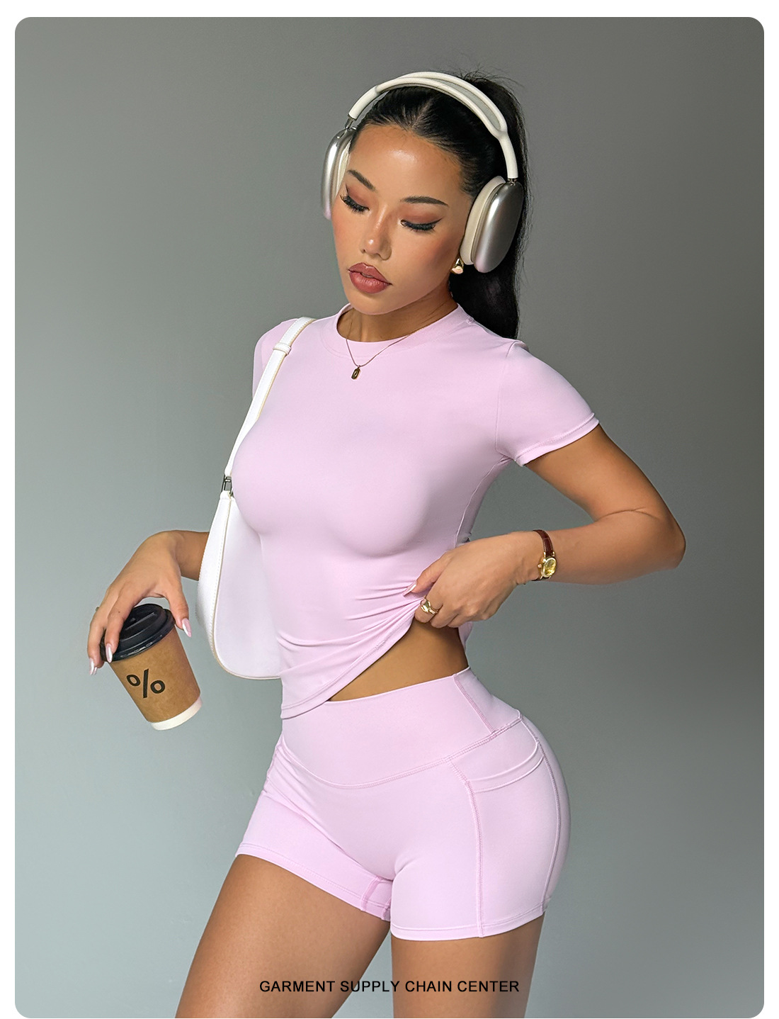 유럽과 미국의 국경 간 인기 여름 요가 슈트 반팔 요가 반바지 슈트 여성용 투피스 고급 요가 슈트스토어 가기