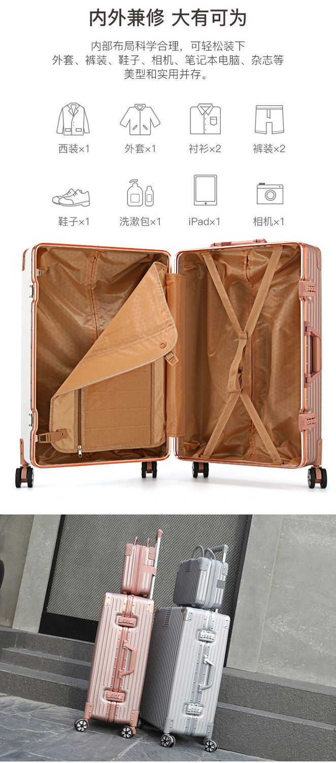 공장 다이렉트 패스워드 박스 여성 수하물 학생 소형 신선한 가죽 상자 남성용 알루미늄 프레임 트롤리 박스 여행의 한국어 버전