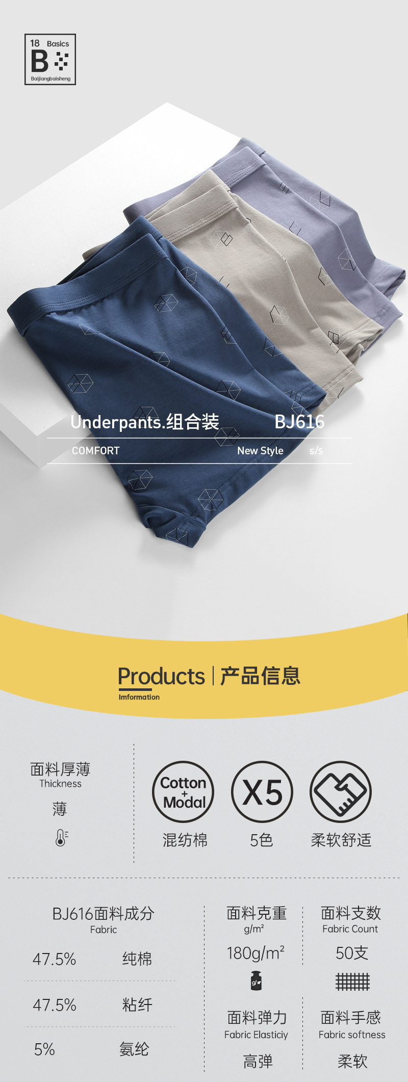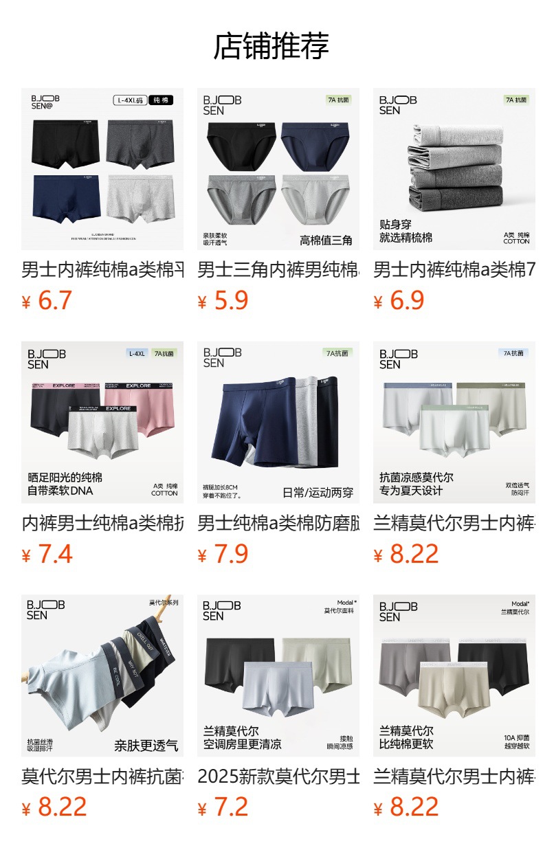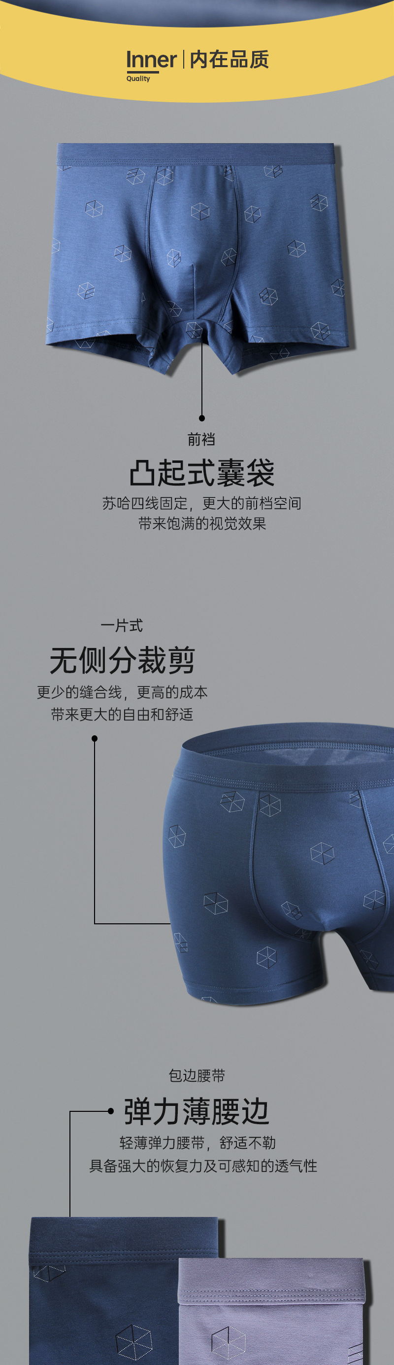 봄여름 남성 속옷 모달 코튼 플랫 코튼 미드웨이스트 부드럽고 통기성 좋은 남성용 코튼 사각팬티스토어 가기