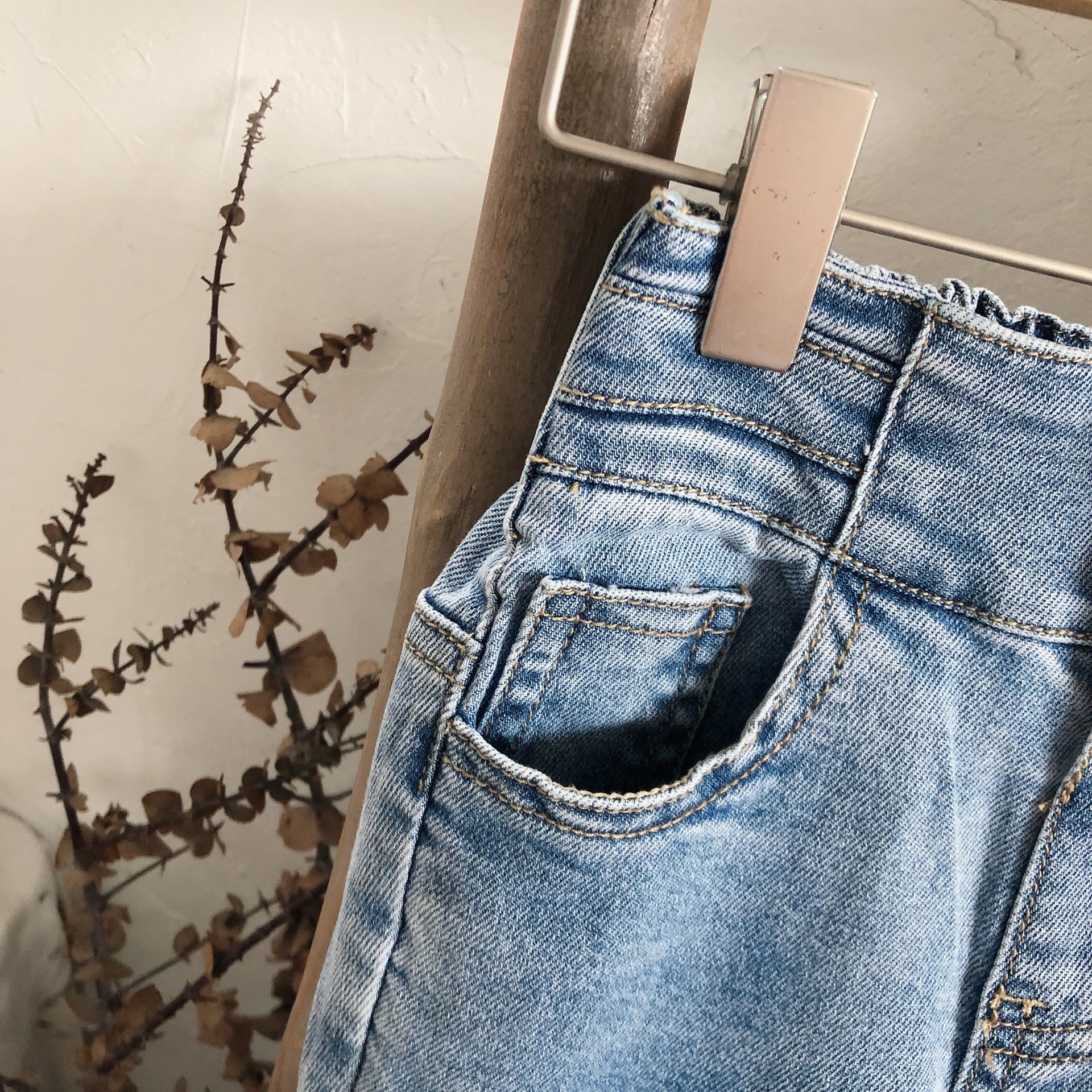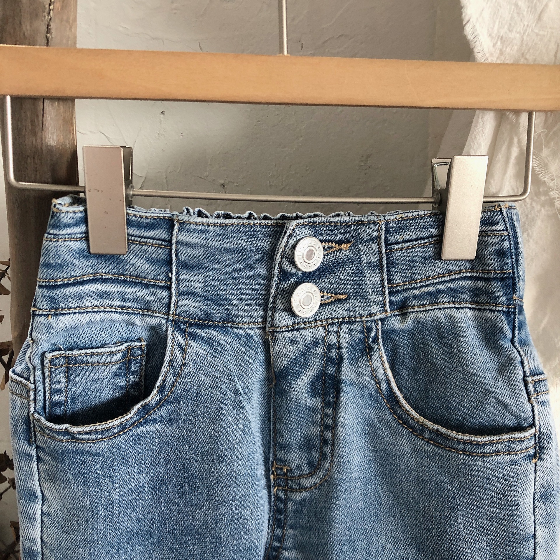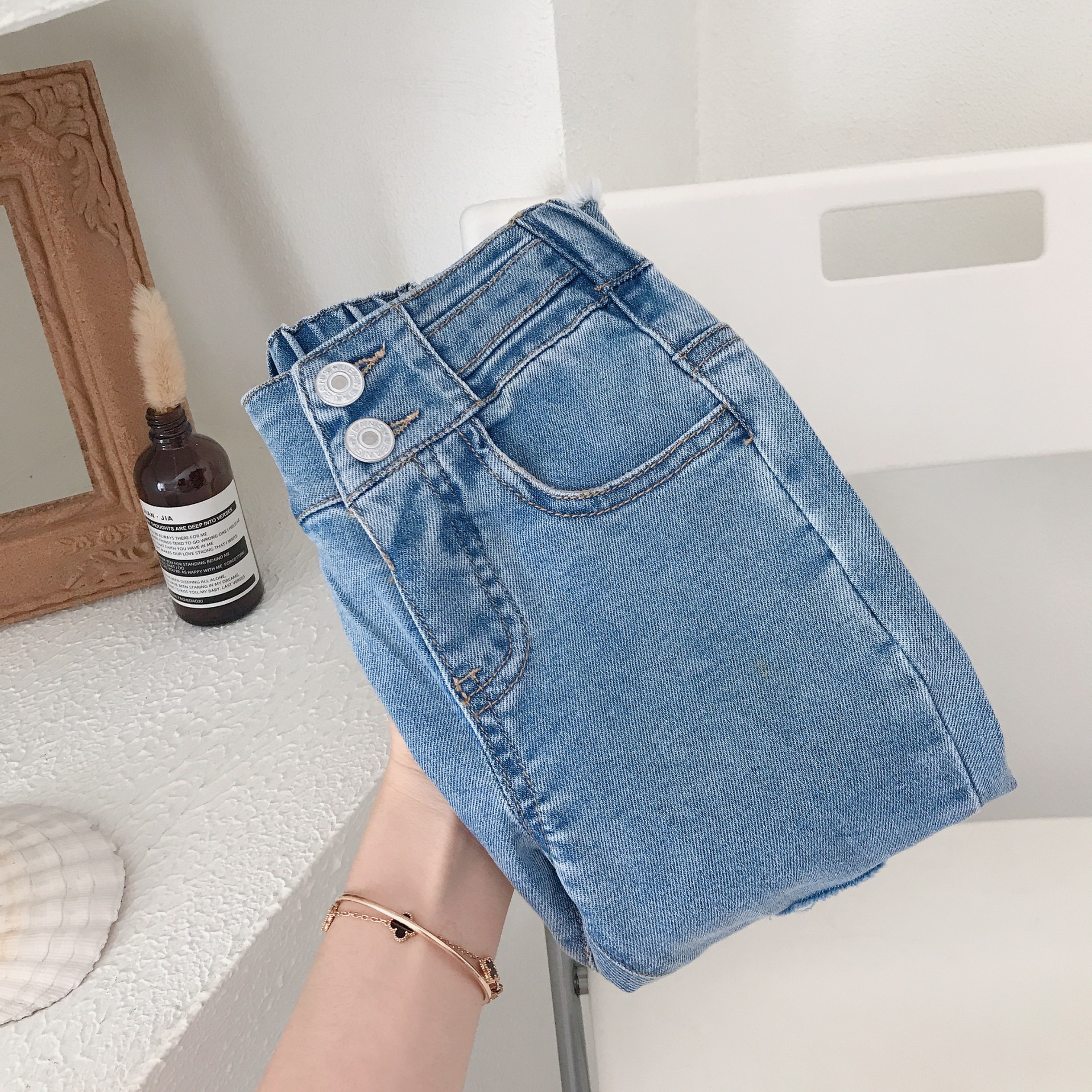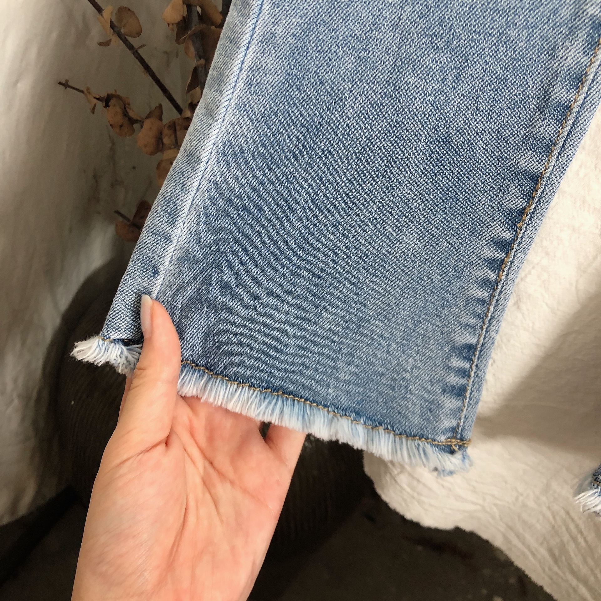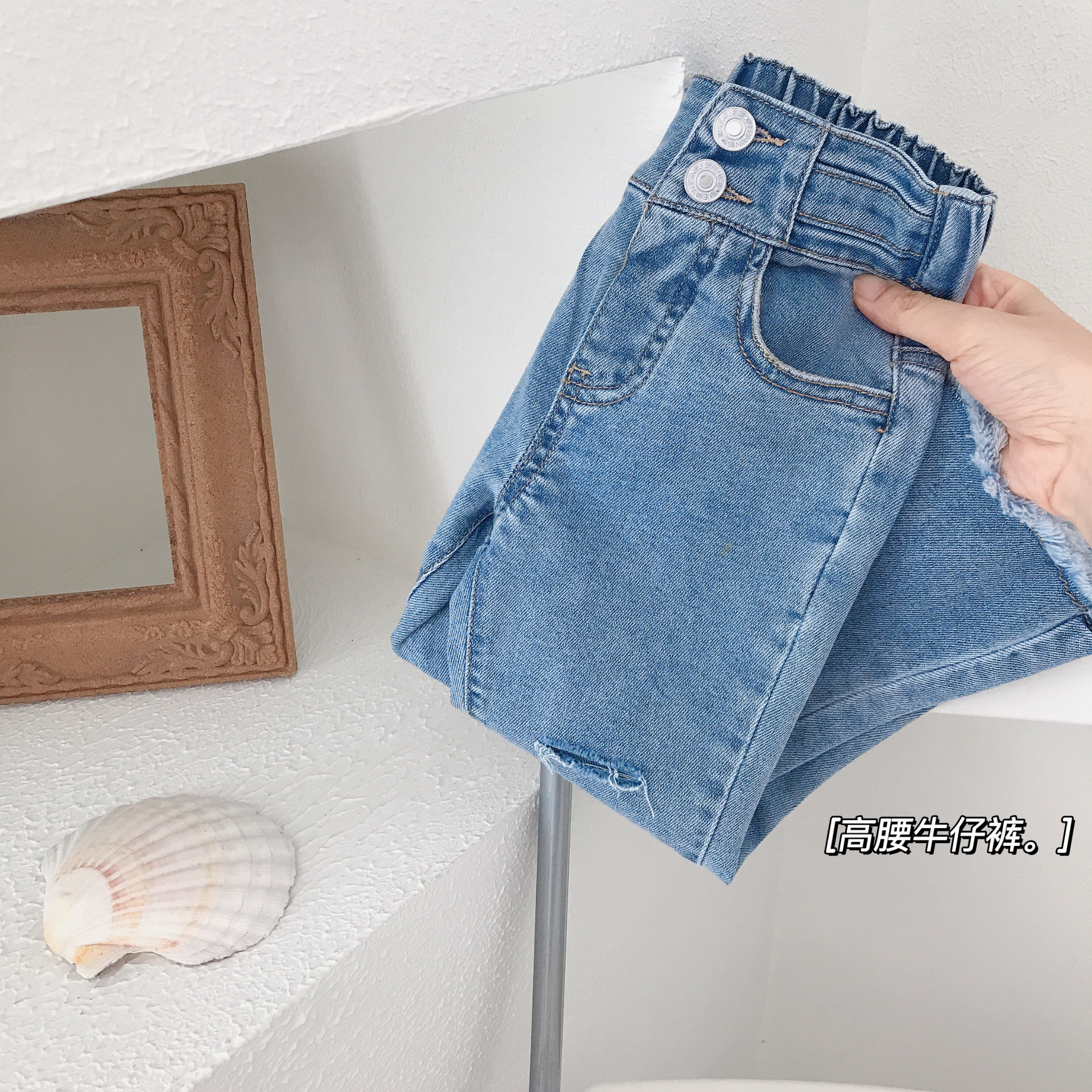 여아용 데님 팬츠 2025 가을 9부 미세 신축성 바지 아기용 찢어진 하이웨이스트 플레어 팬츠 하이웨이스트 슬림핏스토어 가기