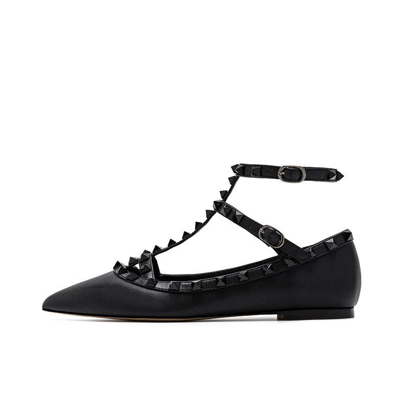 고급 버전 VT 리벳 포인티드 토 플랫 슈즈 2025 봄 신작 인터넷 연예인 페이턴트 가죽 스트랩 버드나무 펌프스 여성용
