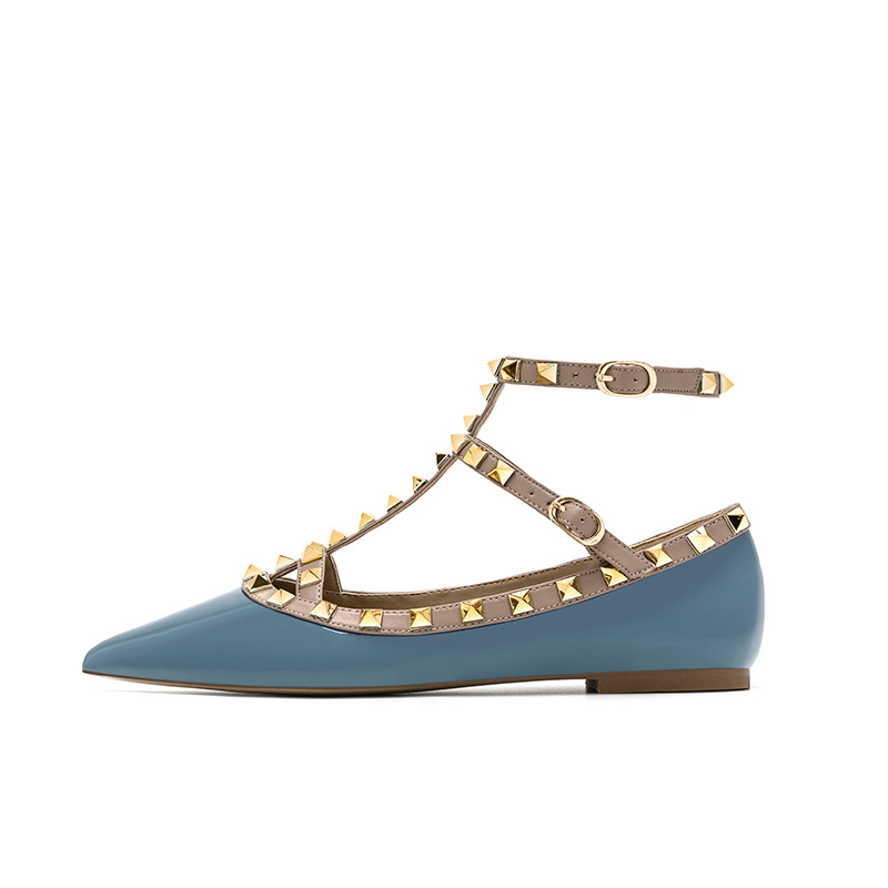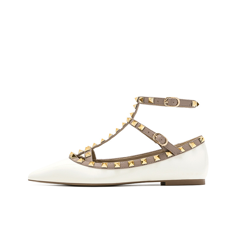 고급 버전 VT 리벳 포인티드 토 플랫 슈즈 2025 봄 신작 인터넷 연예인 페이턴트 가죽 스트랩 버드나무 펌프스 여성용스토어 가기