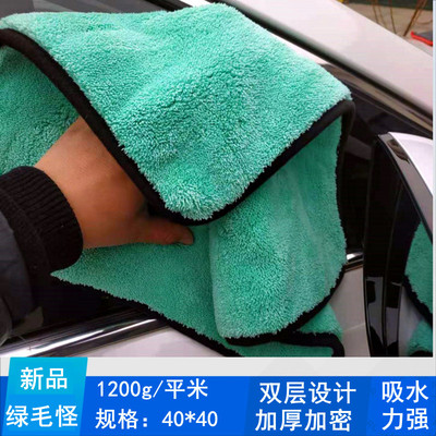 1200g 绿毛怪收水毛巾加厚双层珊瑚绒洗车巾细纤维吸水擦车布批发