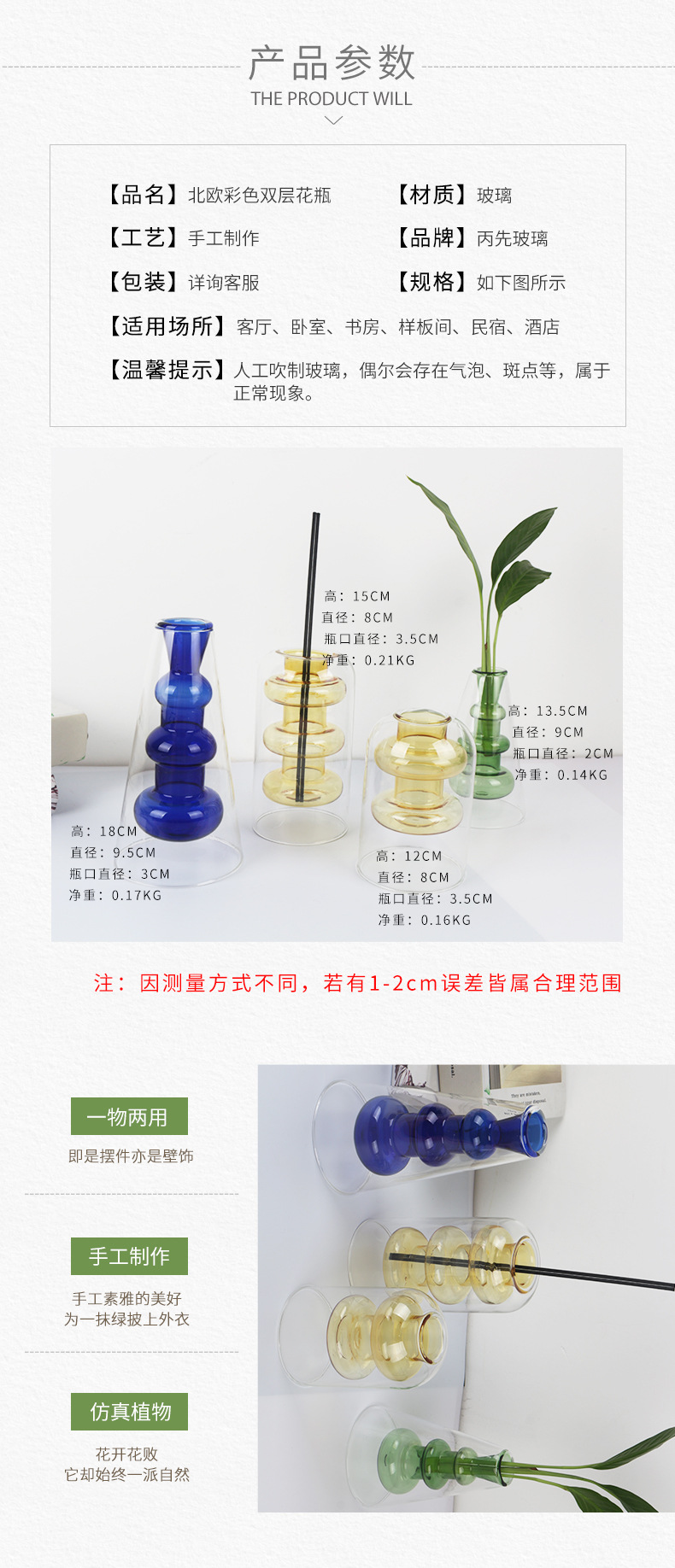 간단한 스테인드 글라스 크리 에이 티브 더블 레이어 투명 꽃병 하이 엔드 북유럽 꽃꽂이 거실 장식 꽃 용품 소스 공장스토어 가기