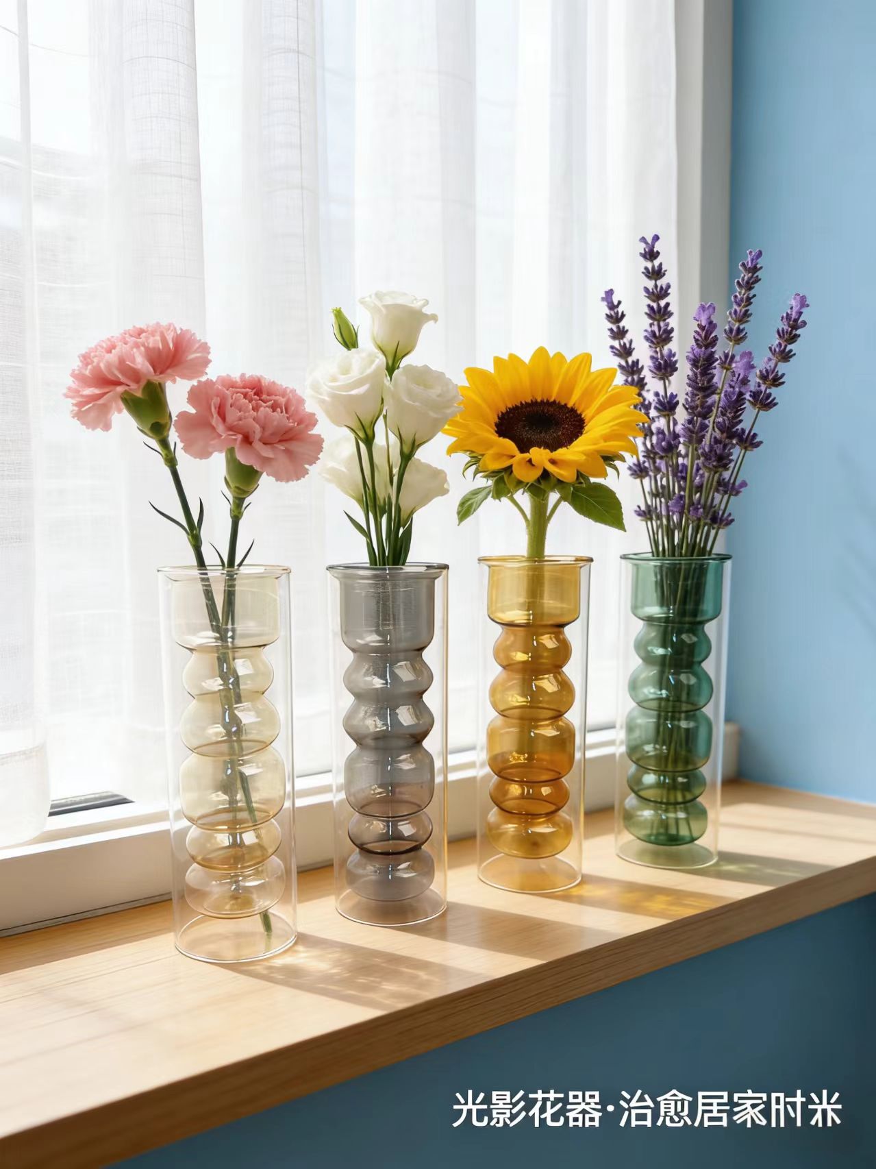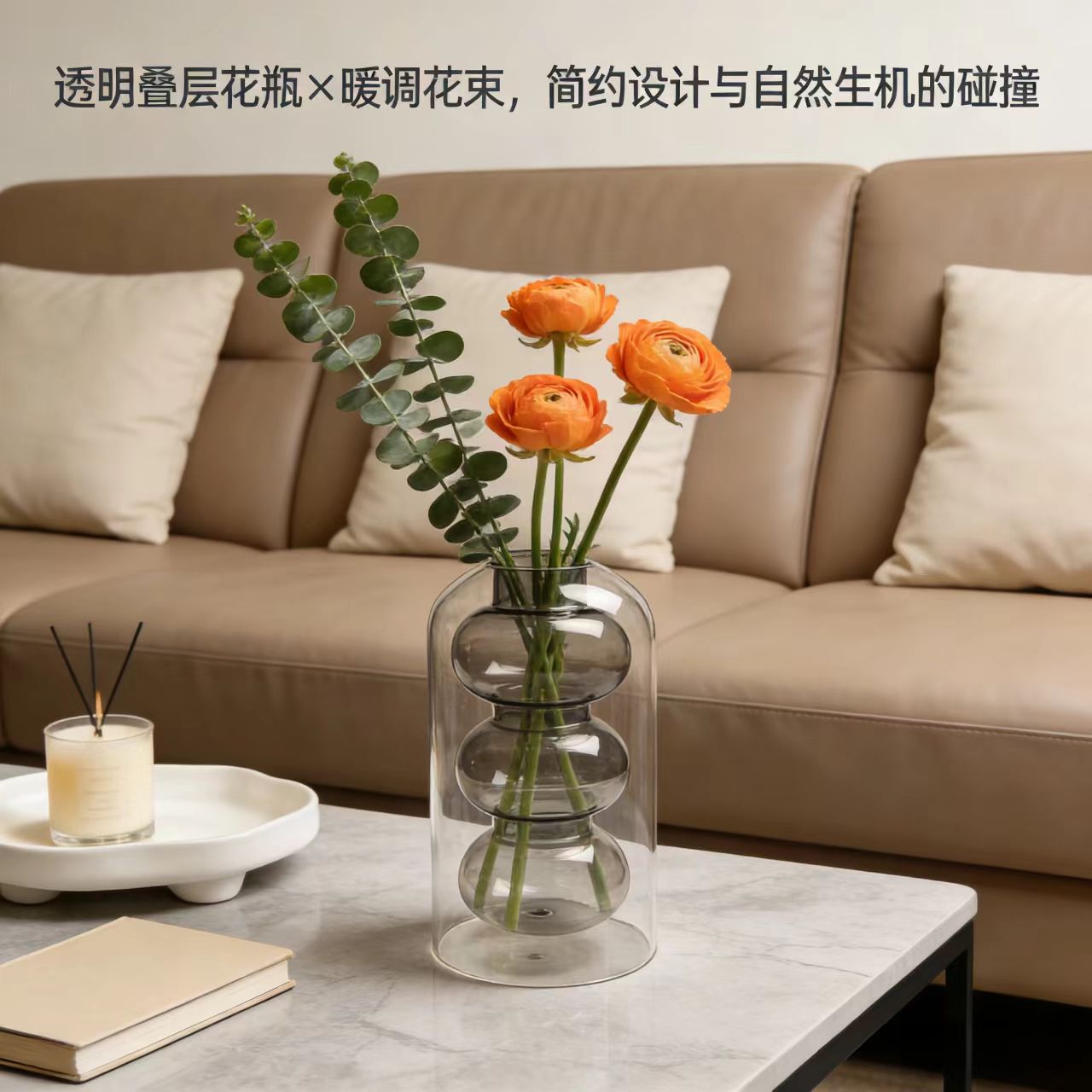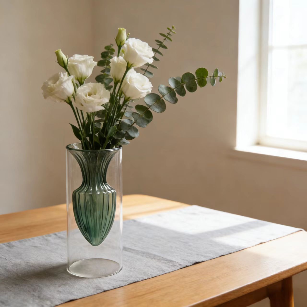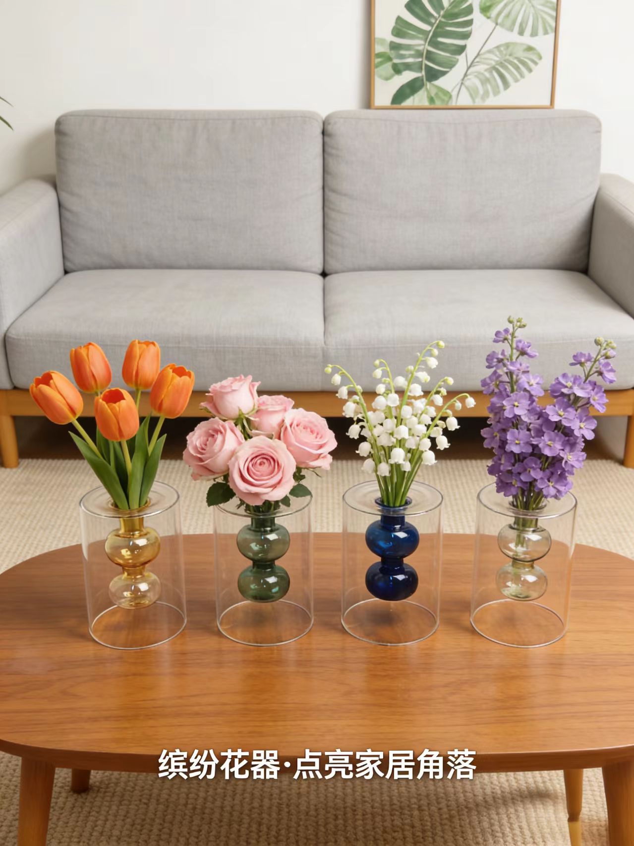 간단한 스테인드 글라스 크리 에이 티브 더블 레이어 투명 꽃병 하이 엔드 북유럽 꽃꽂이 거실 장식 꽃 용품 소스 공장