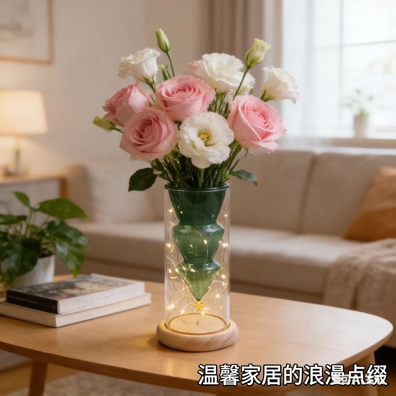 • 로그 야간 조명베이스가있는 크리스마스 트리 이중 꽃병
