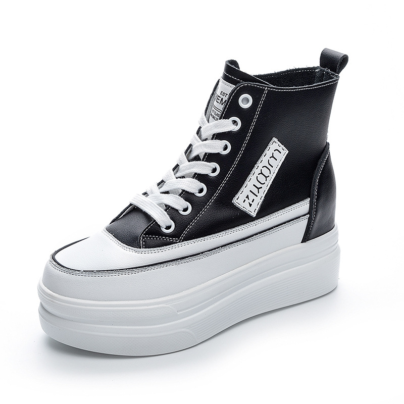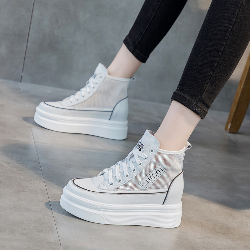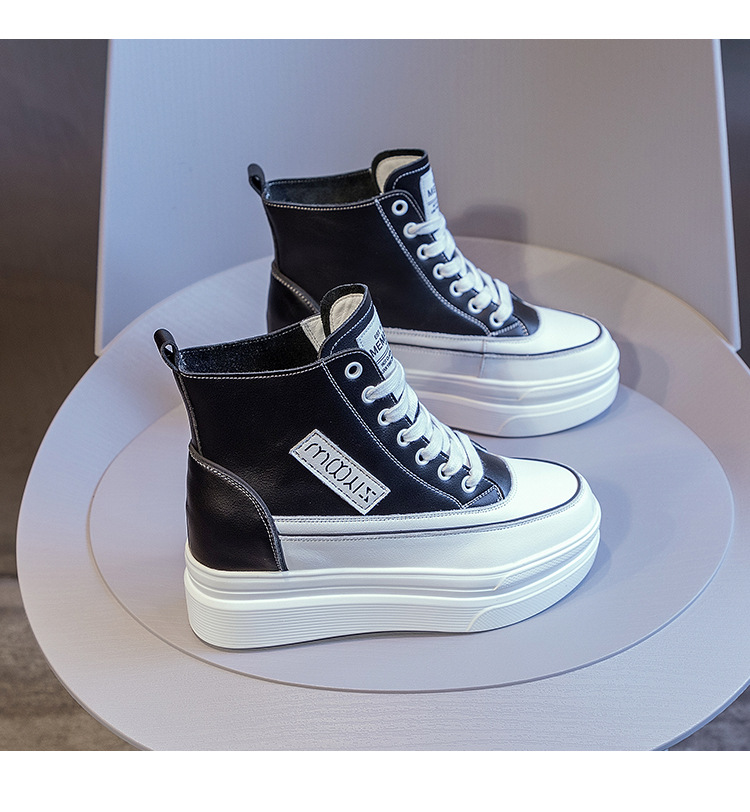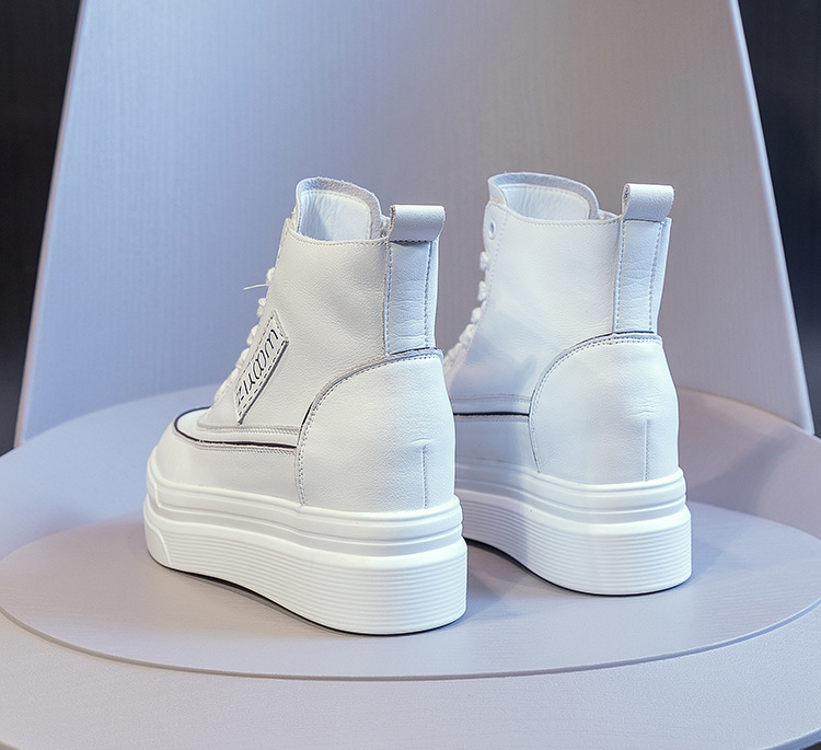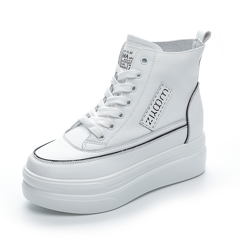 하이탑 슈즈 2025 봄/가을 신상 두꺼운 밑창 키높이 캐주얼 여성화 한국 스타일 다용도 패셔너블 화이트 슈즈스토어 가기