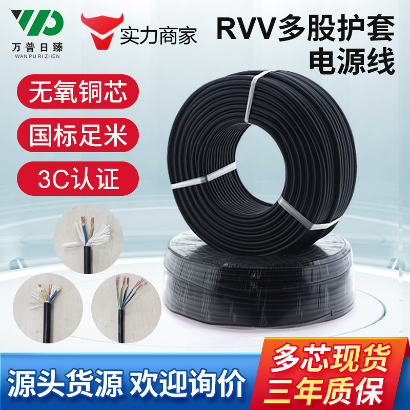 Wanpu 가정용 rvv 시스 라인 멀티 스트랜드 순수 구리 2 코어 홈 개선 와이어 단일 코어 산업용 케이블 4 플랫 가구스토어 가기