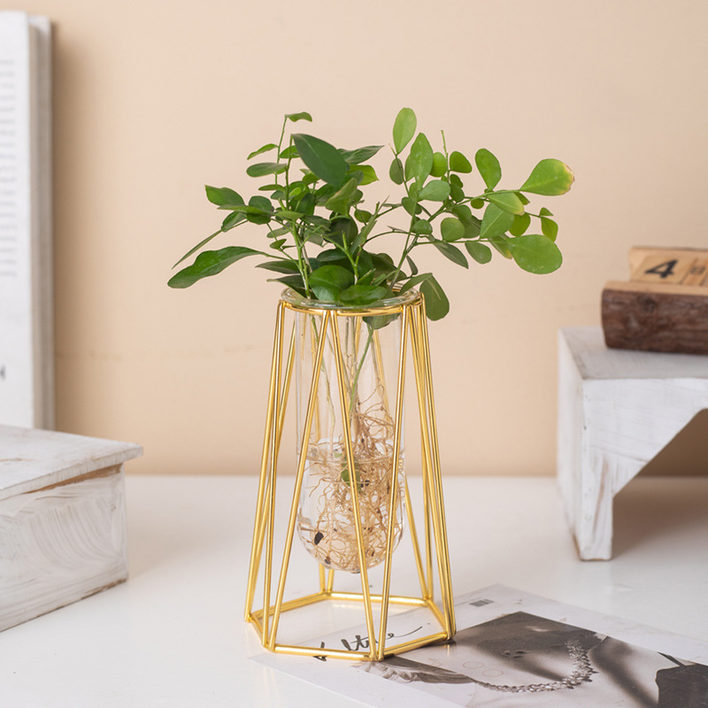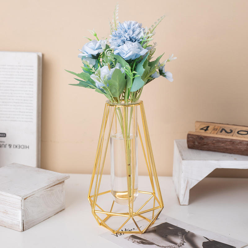 국경 간 뜨거운 판매 금도금 철 유리 꽃병 거실 테이블 장식 말린 꽃 크리 에이 티브 가정용 가구