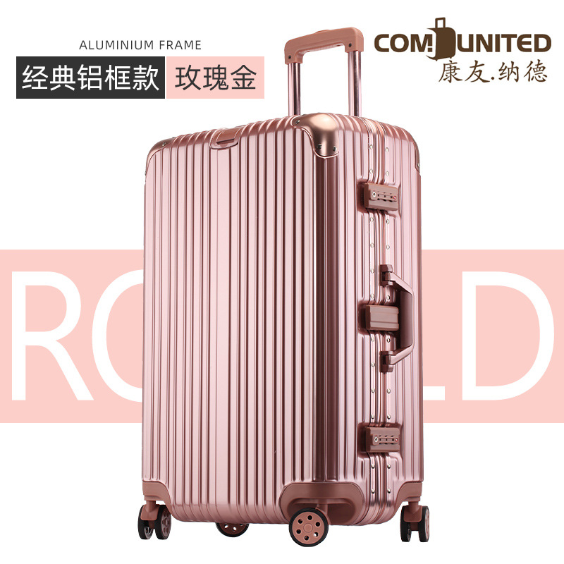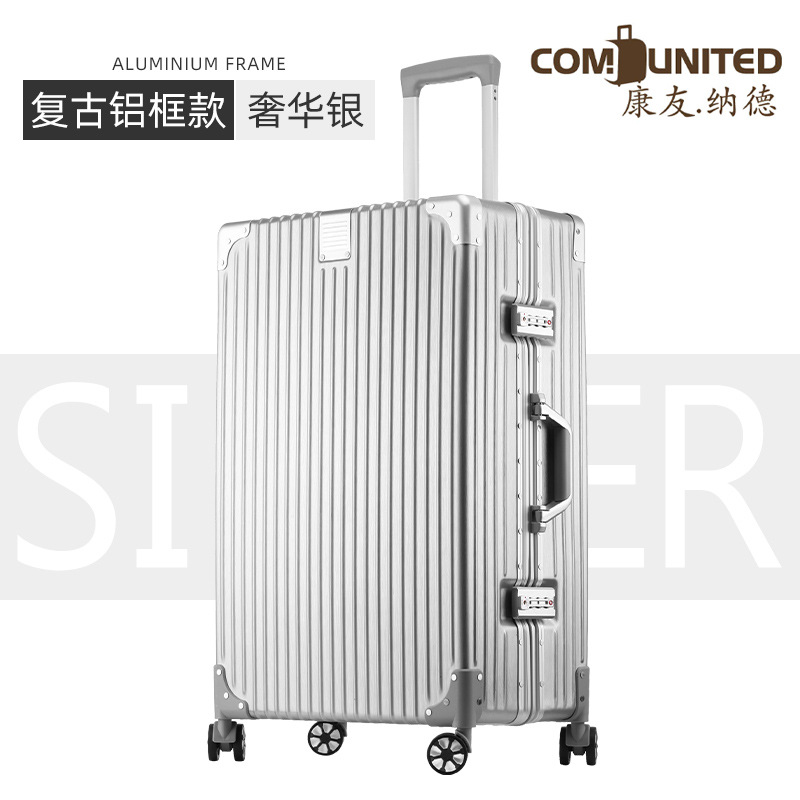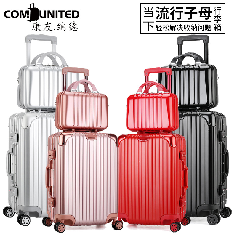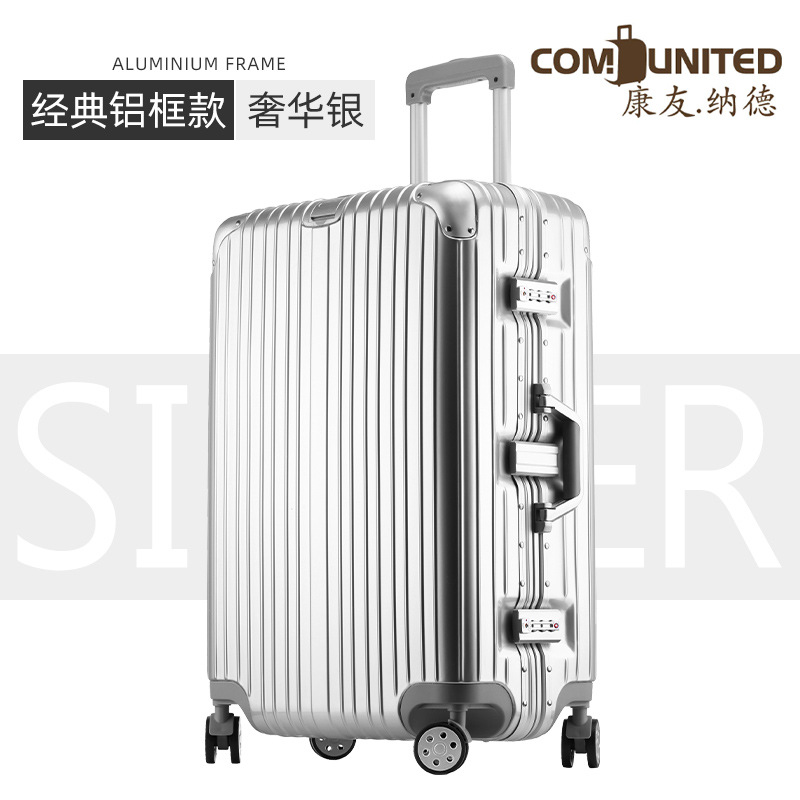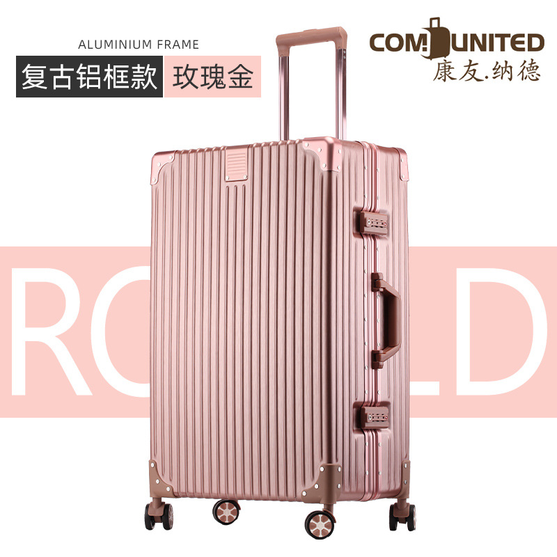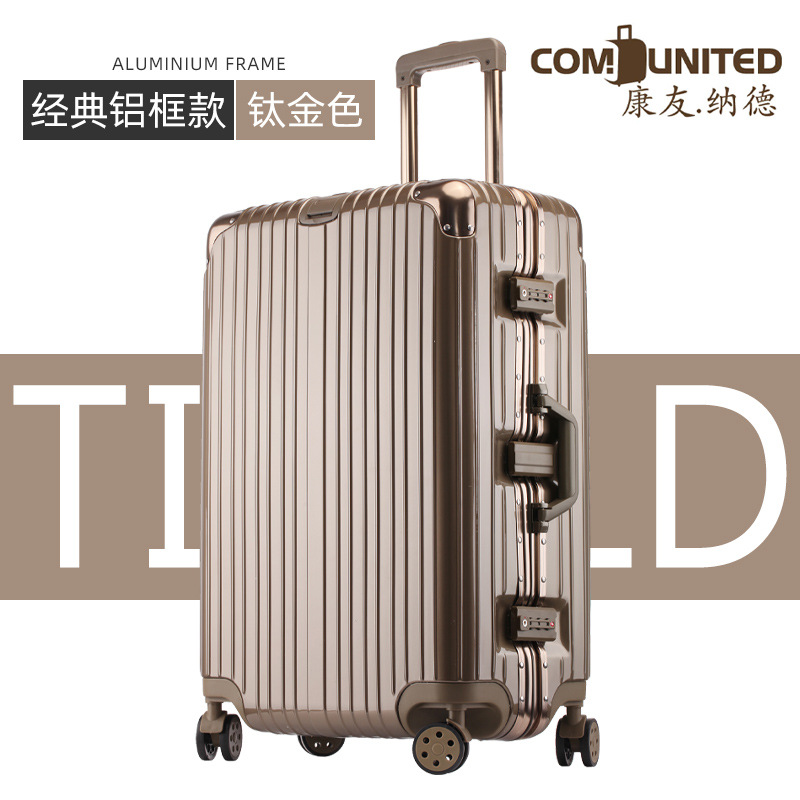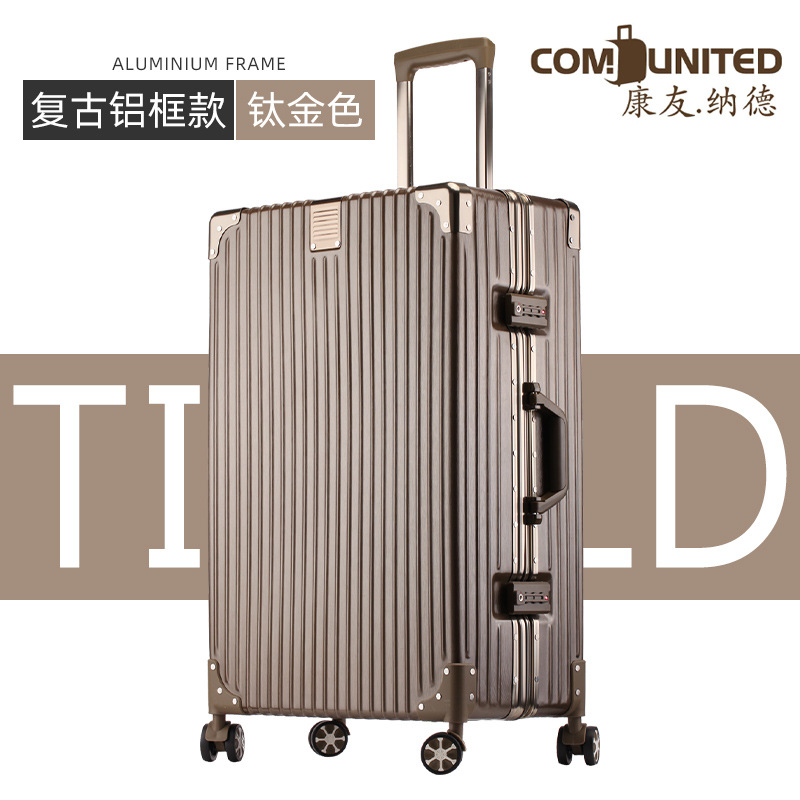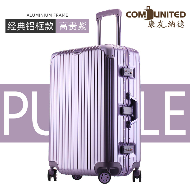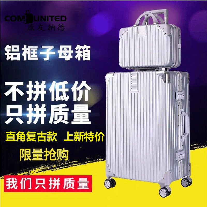 맞춤형 로고 수하물 24 인치 수하물 케이스 알루미늄 프레임 유니버설 휠 탑승 비밀번호 박스 여행 수하물 머리카락 세대스토어 가기