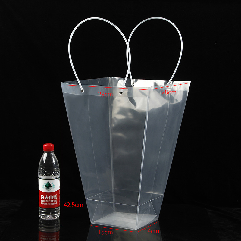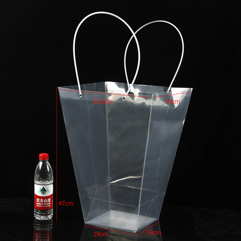어머니의 날 투명 PVC 꽃 꽃다발 방수 포장 T 자형 기념품 꽃꽂이 가방 꽃 pp 휴대용 포장 가방